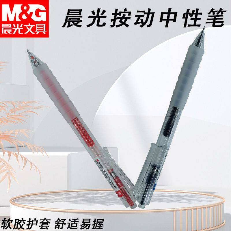 晨光中性笔按动式黑色水笔红色蓝色速干顺滑大容量学生用碳素笔