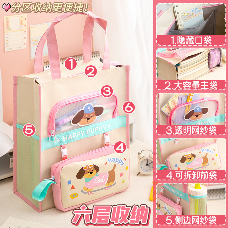 补习袋手提袋拎书袋大容量补课包高颜值可爱少女心帆布袋小学生专用试卷作业收纳袋初中学习袋儿童女孩文件袋