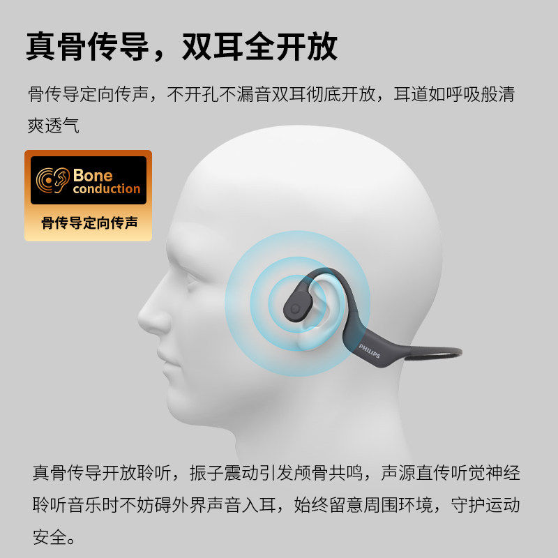 Philips/飞利浦 TAA6609真骨传导不入耳跑步蓝牙耳机防水运动专用