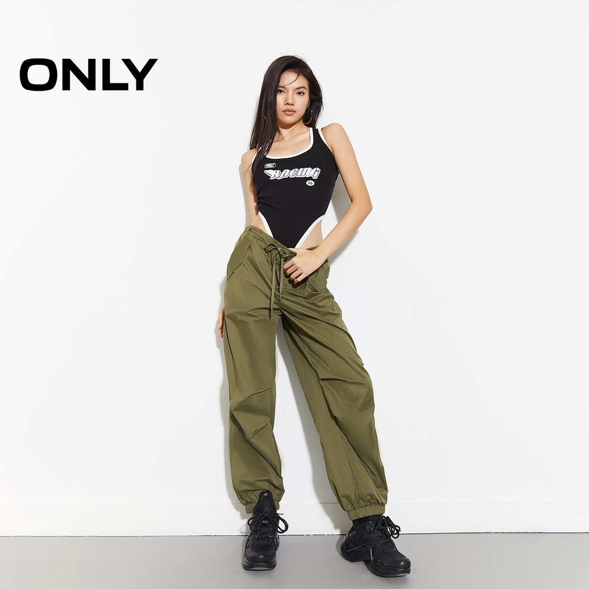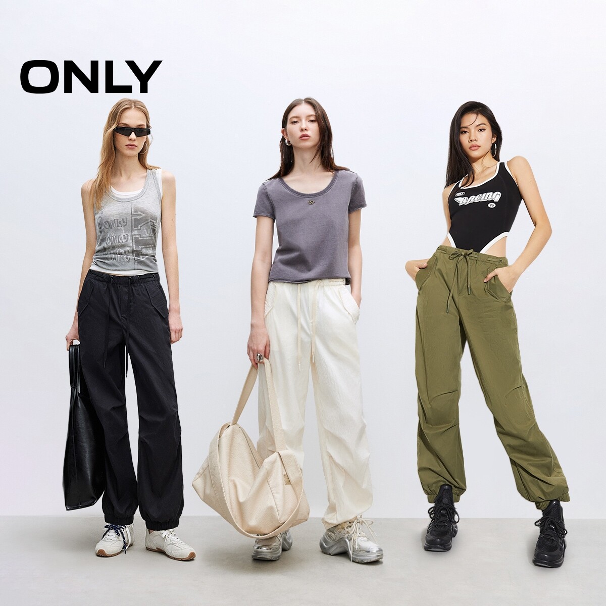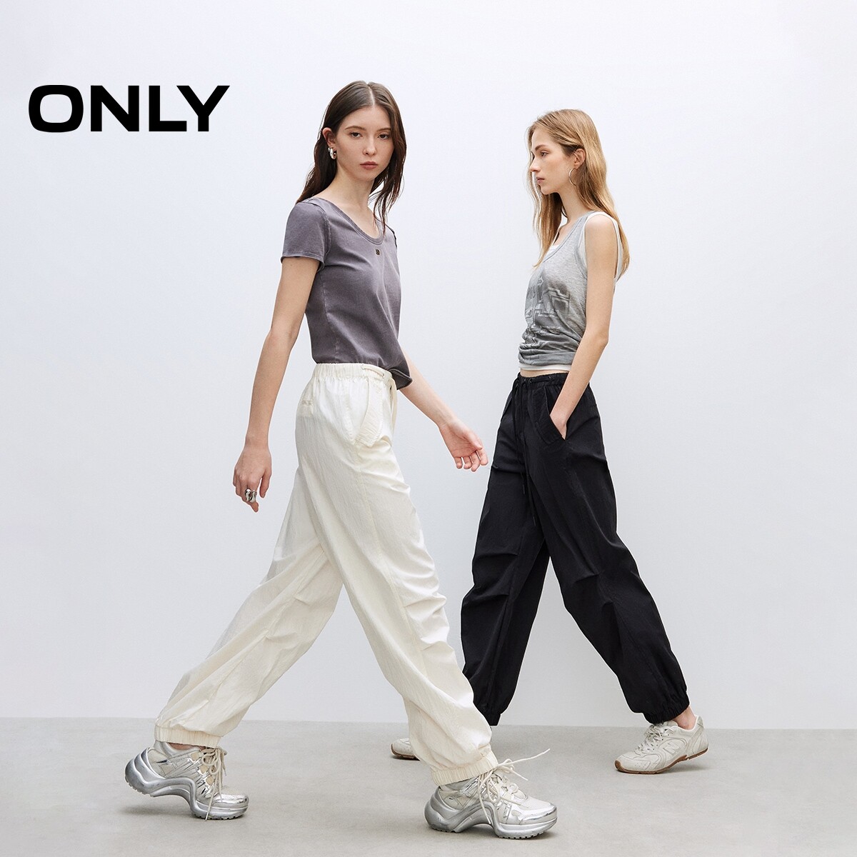 【ONLY奥莱】春款休闲运动风松紧腰头宽松长款直筒束脚休闲裤女