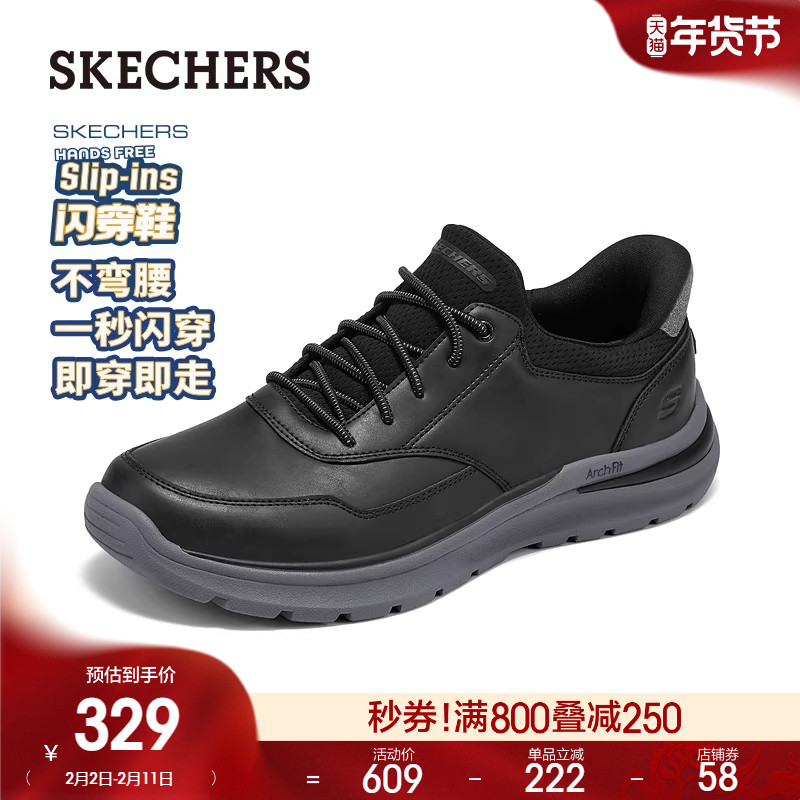 斯凯奇闪穿鞋春季商务休闲男鞋一脚蹬通勤鞋足弓支撑运动皮鞋