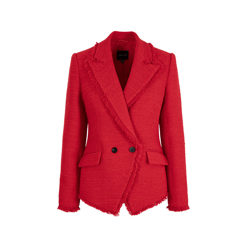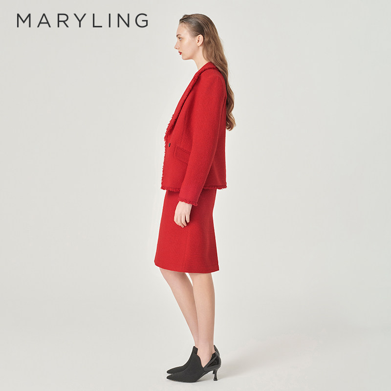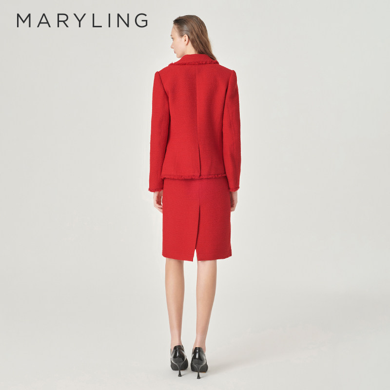 MARYLING玛俪琳初春新品红色翻驳领粗花呢外套A1EAW14090