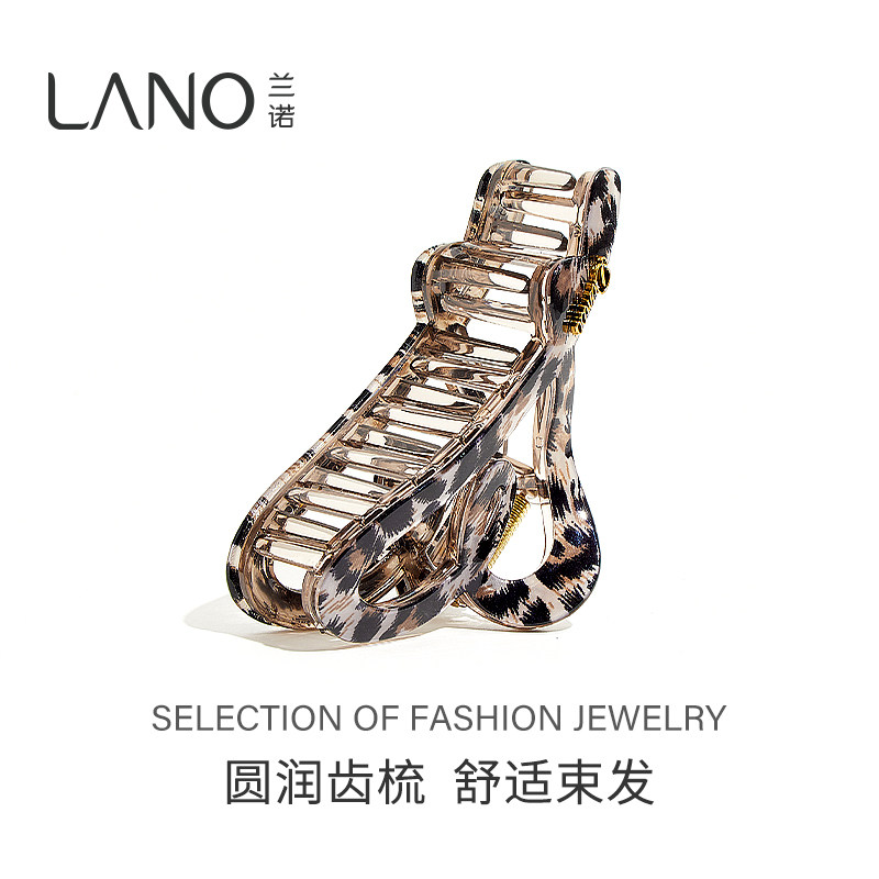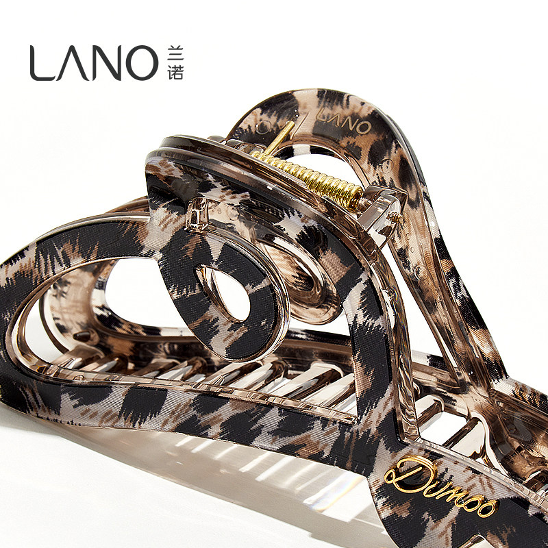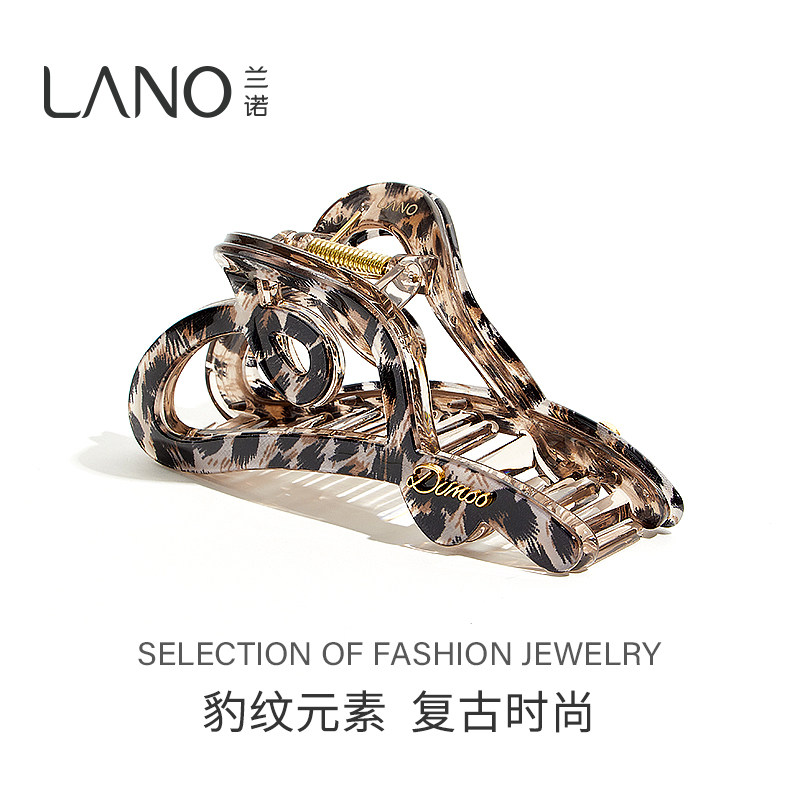 兰诺豹纹爱心抓夹女高级感2025新款大号发量大后脑勺鲨鱼夹子发夹