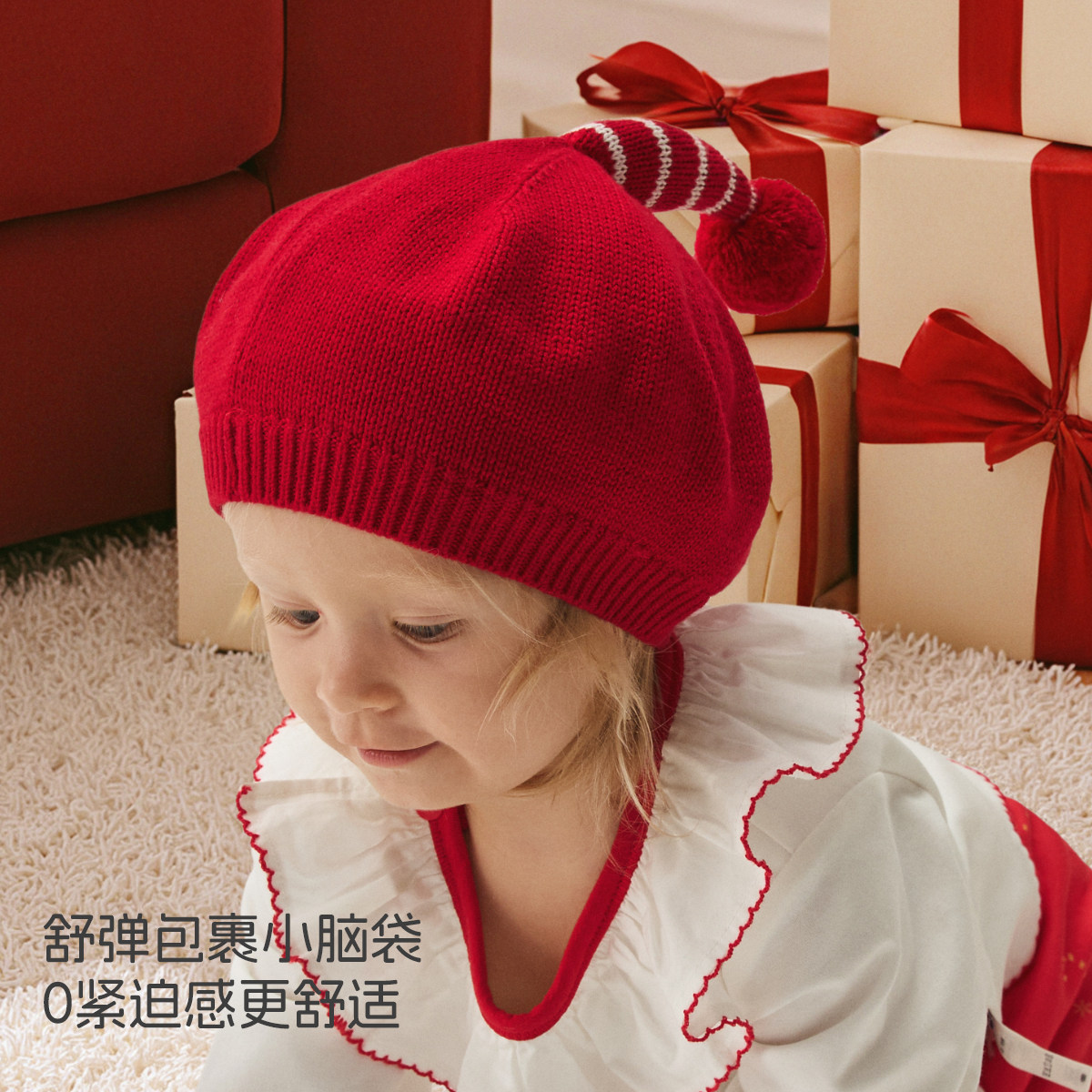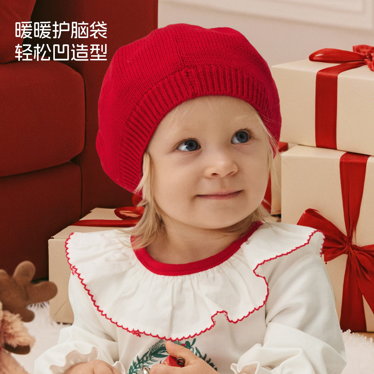 aqpa爱帕圣诞新年毛线帽秋冬羊毛保暖包头贝雷帽外出防风婴儿帽子