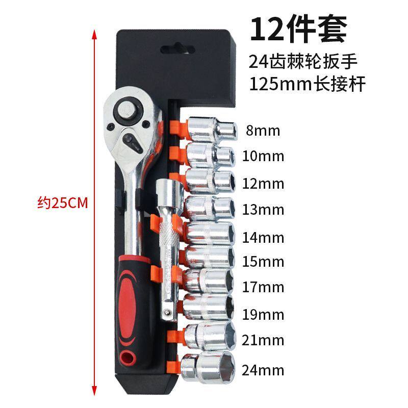 棘轮多功能套筒12件套扳手维修套筒汽车电动摩托车扳手