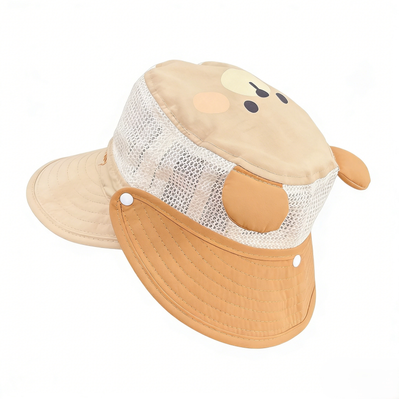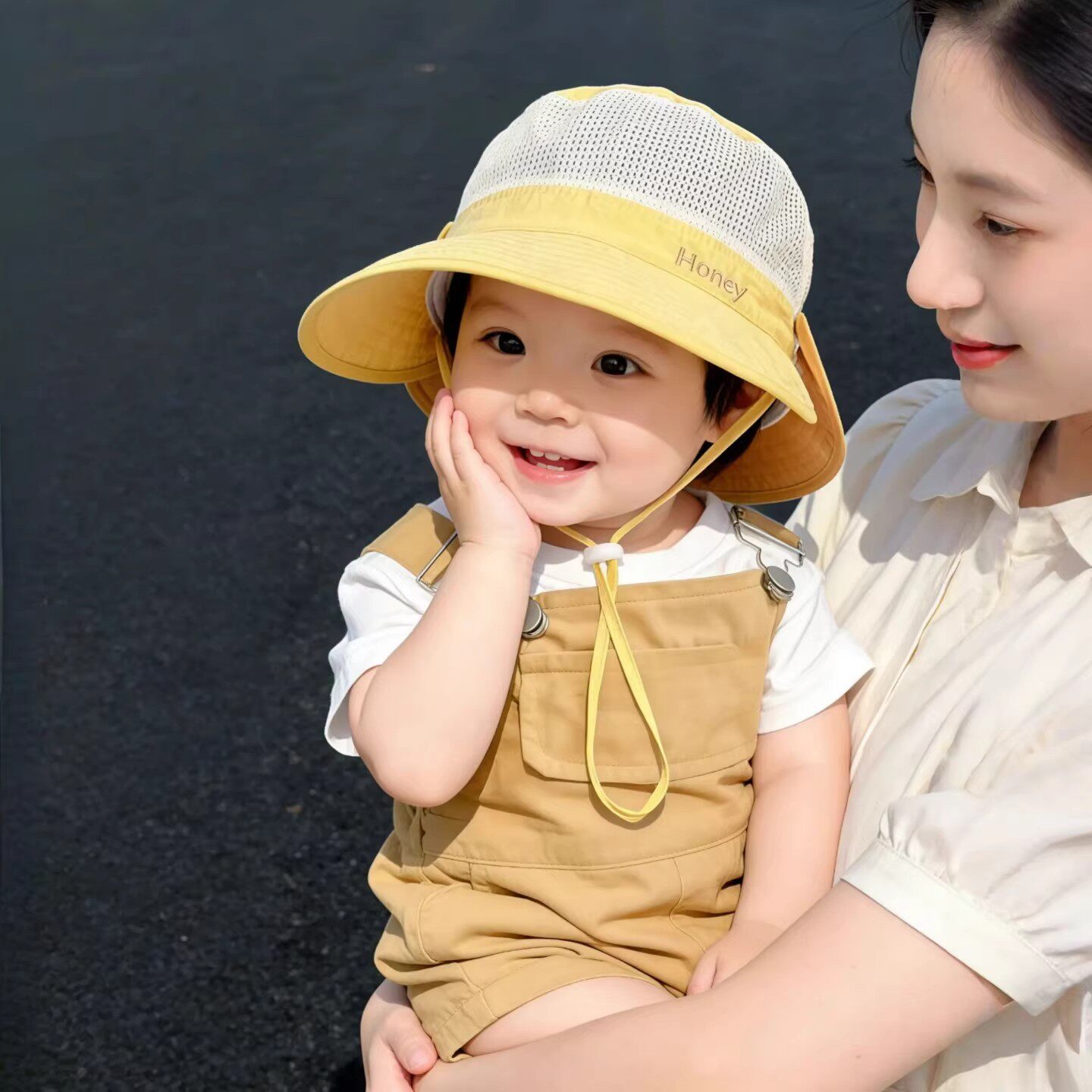 婴儿帽子夏季遮阳帽渔夫帽男童女宝宝网大檐可拆披肩儿童透气速干
