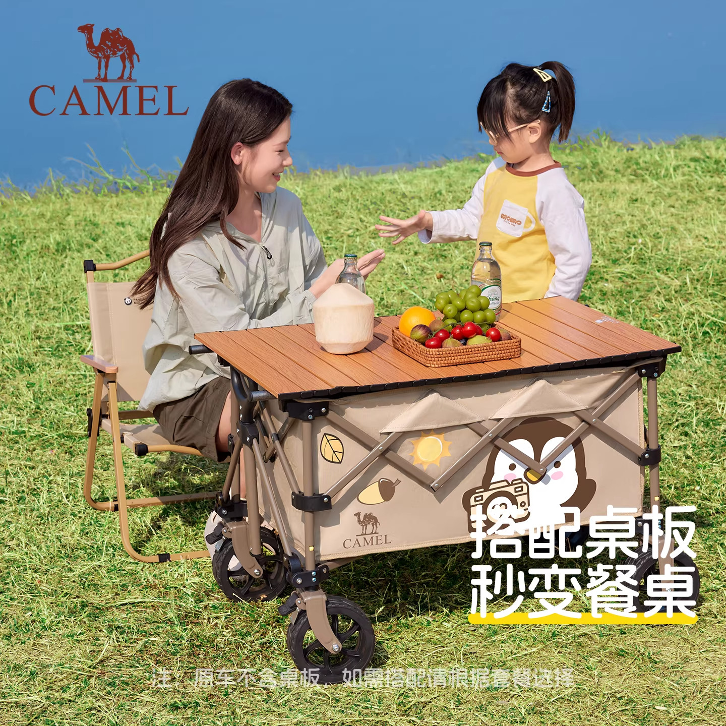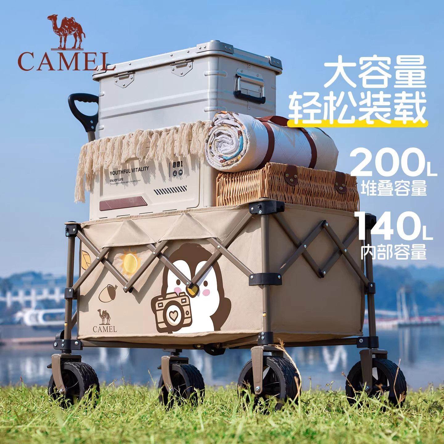 骆驼户外露营车抱抱鹅手推车聚拢野餐营地车可折叠儿童可躺快递车