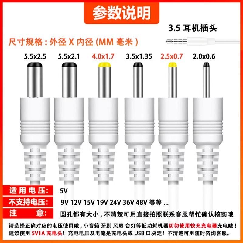 圆孔一拖五万能充电线2.0/2.5/3.5/4.0/5.5圆头音响玩具台灯充电