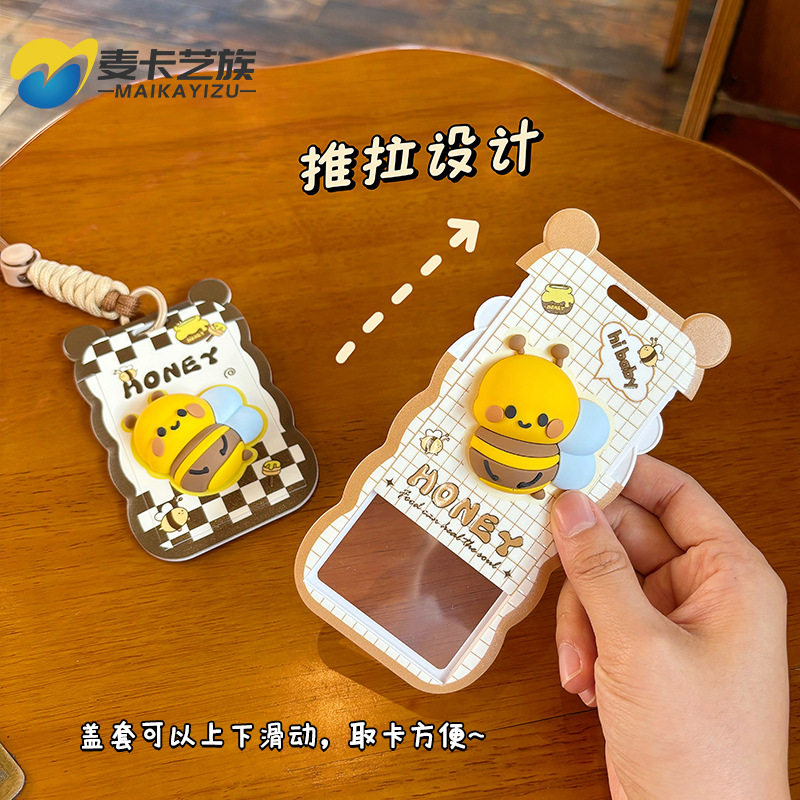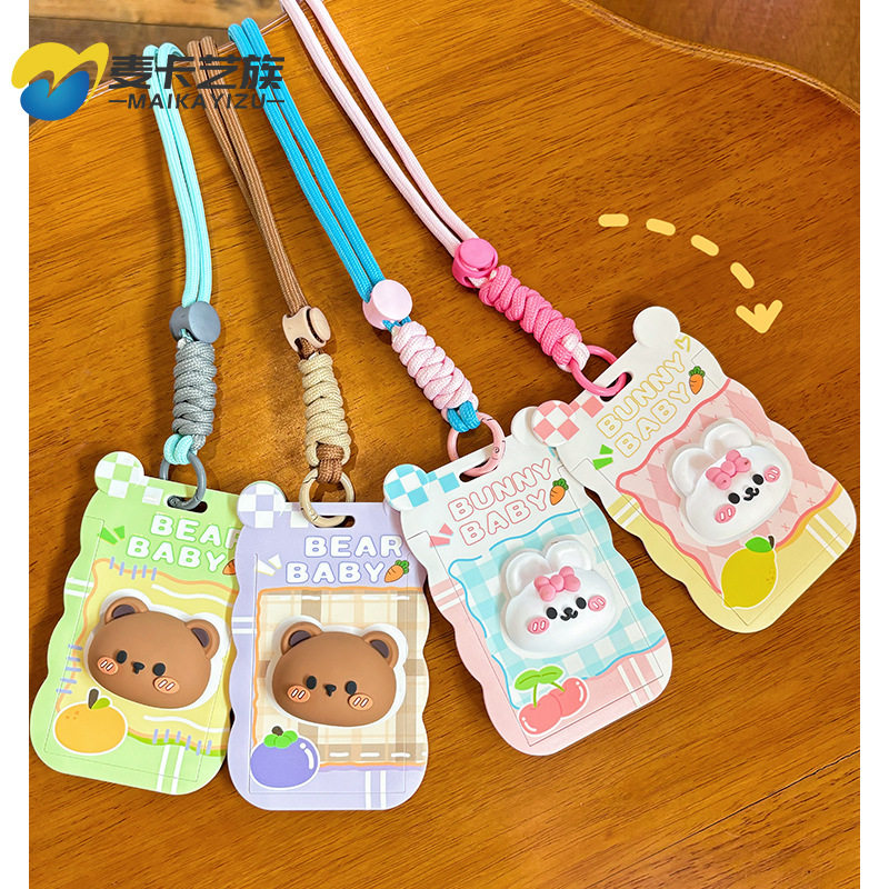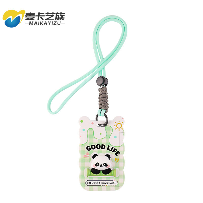 可爱熊猫卡套校园学生饭卡挂脖门禁卡立体卡皮巴拉公交地铁保护套带挂绳校牌工厂牌钥匙扣卡套一体