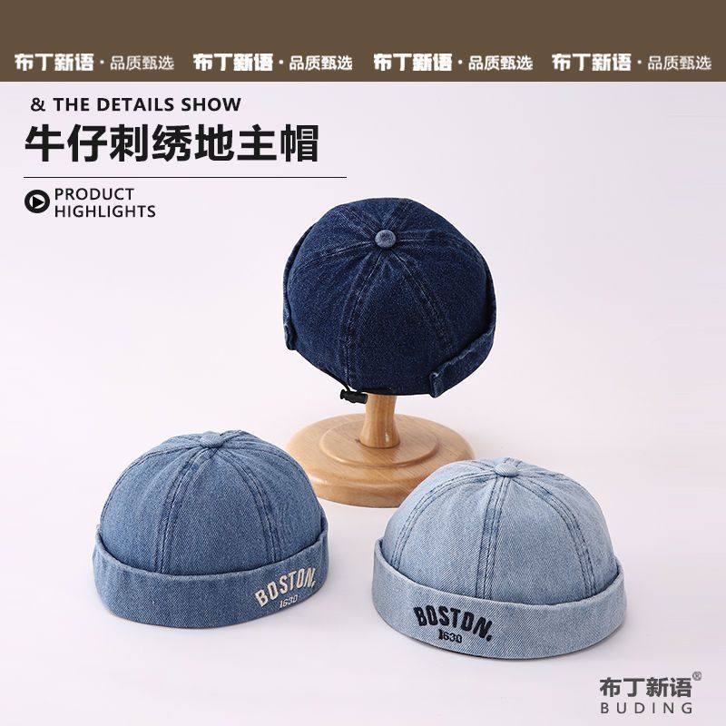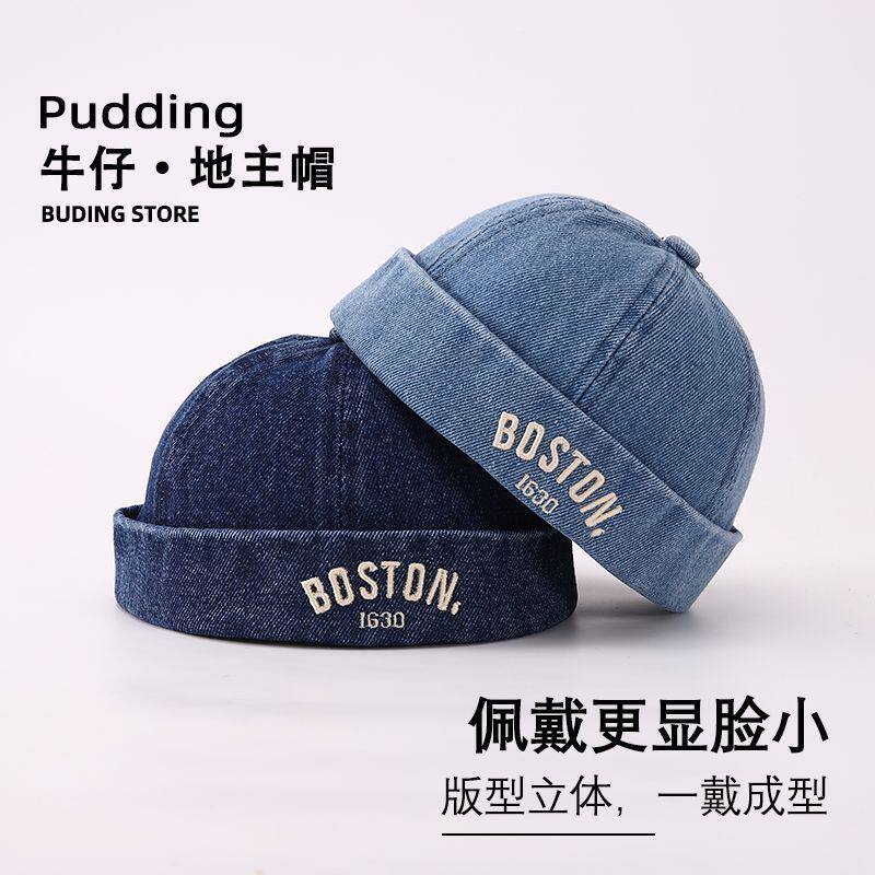 儿童帽子时尚雅痞街头无檐地主帽男女宝宝复古牛仔洋气潮牌瓜皮帽
