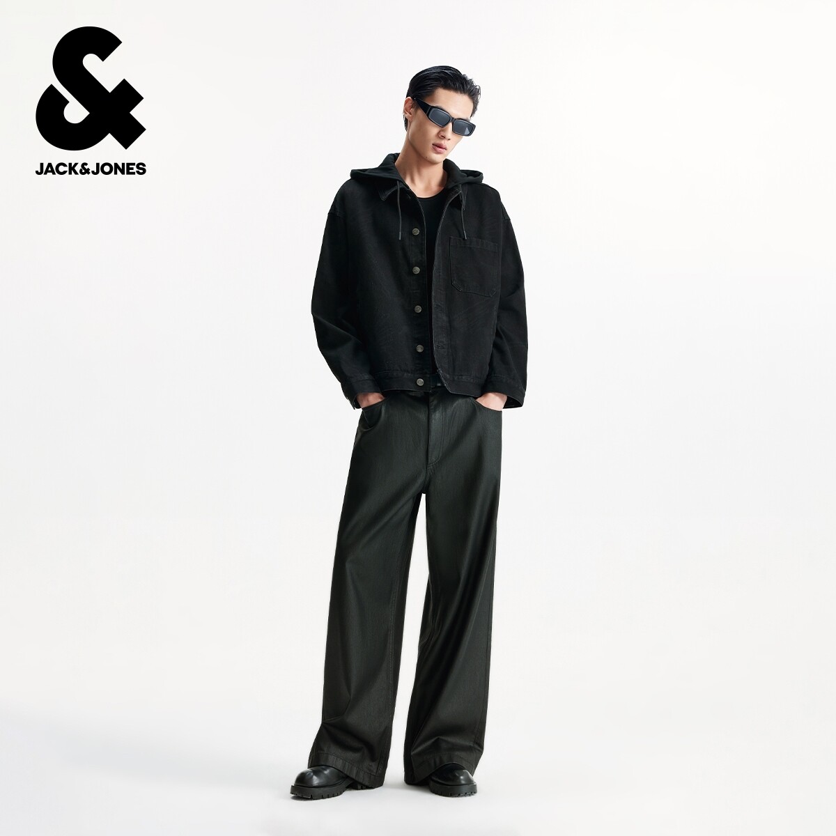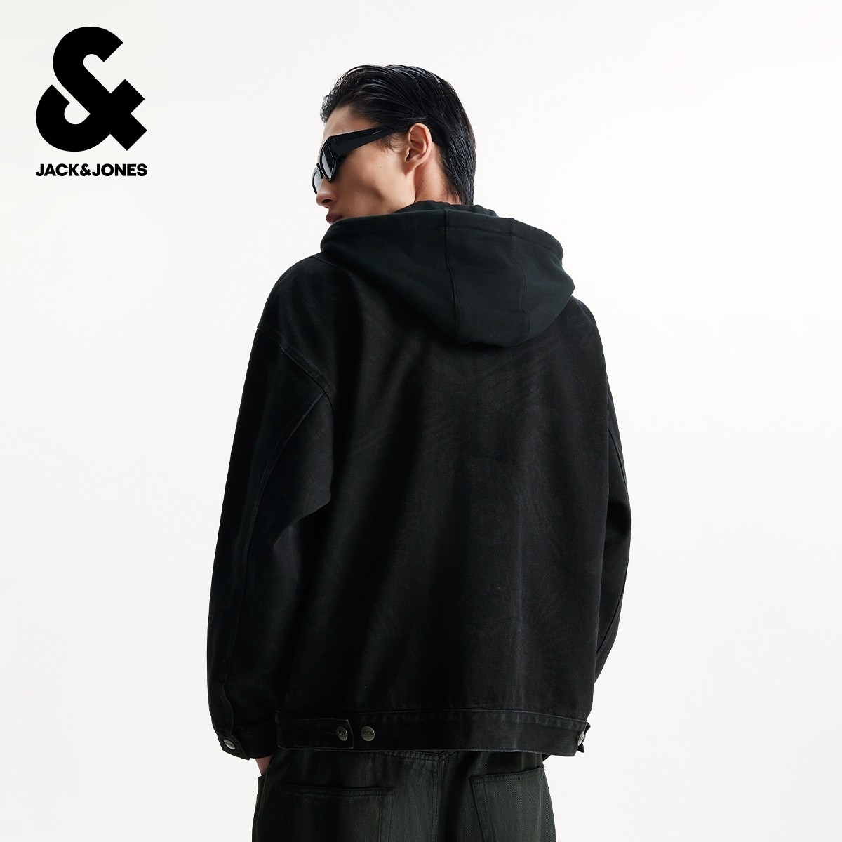 杰克琼斯男装秋季新款满印图案可拆卸连帽休闲宽松牛仔夹克外套
