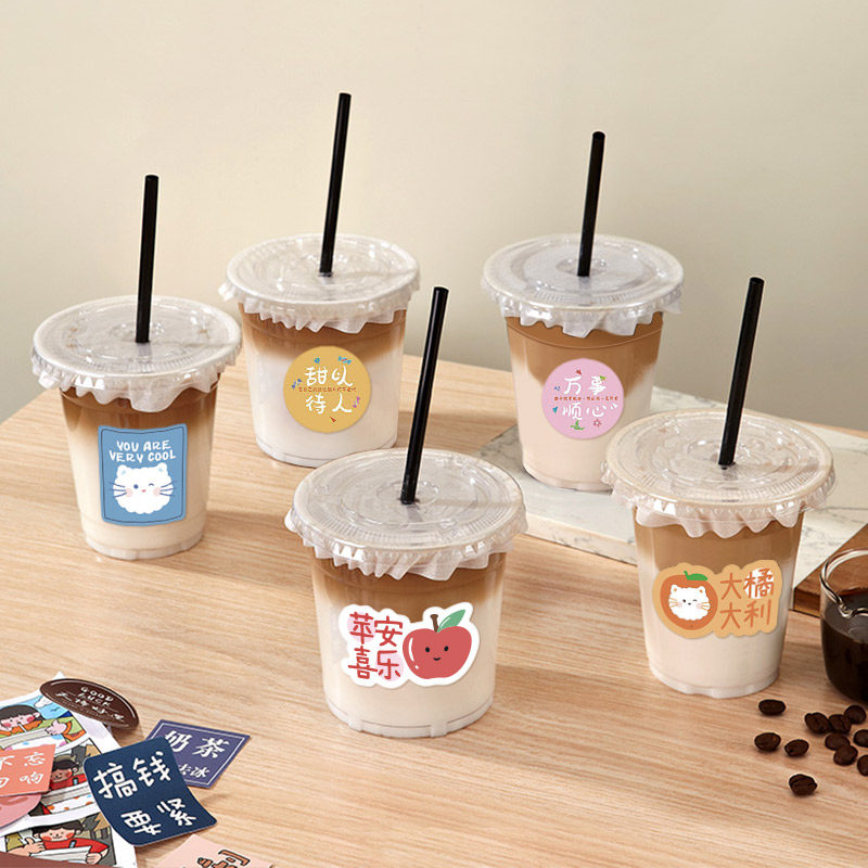咖啡杯一次性pet冷饮杯小红书同款外带奶茶杯子带盖贴纸食品级