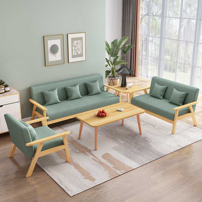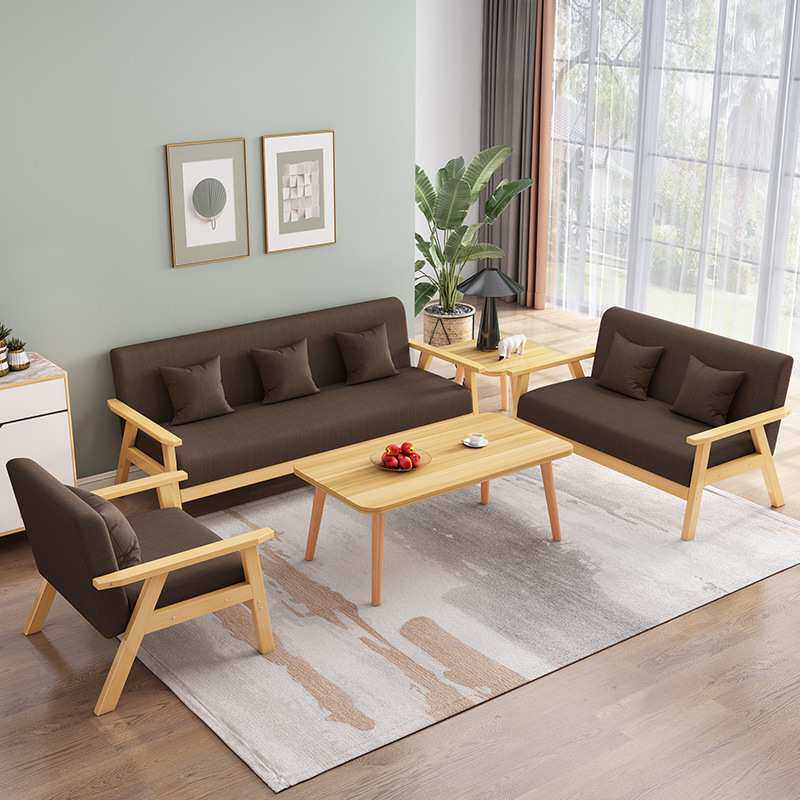 实木沙发茶几组合客厅小户型现代简约布艺三人沙发出租房办公椅子
