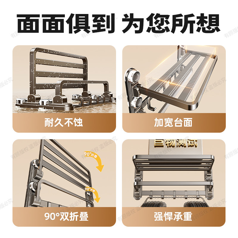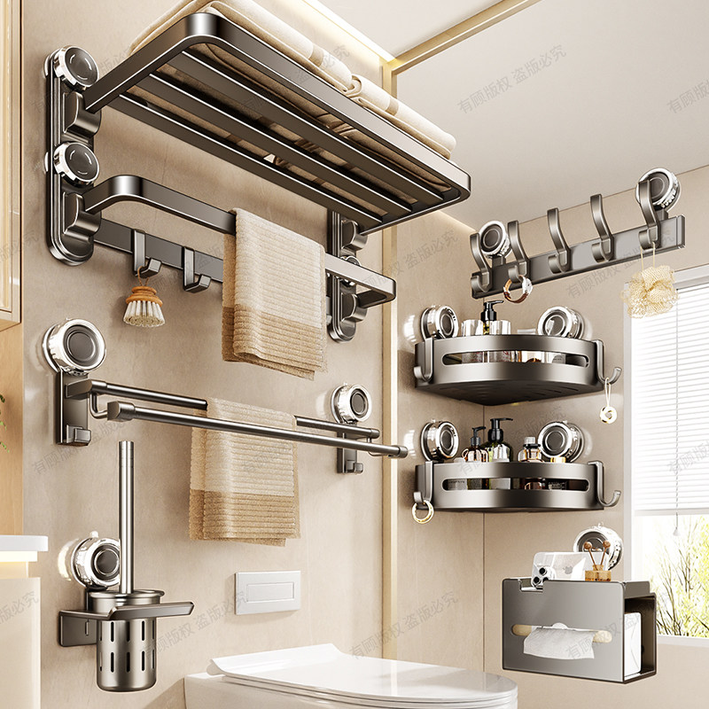 吸盘式毛巾架卫生间免打孔浴室置物架浴巾架可折叠挂架套件多功能