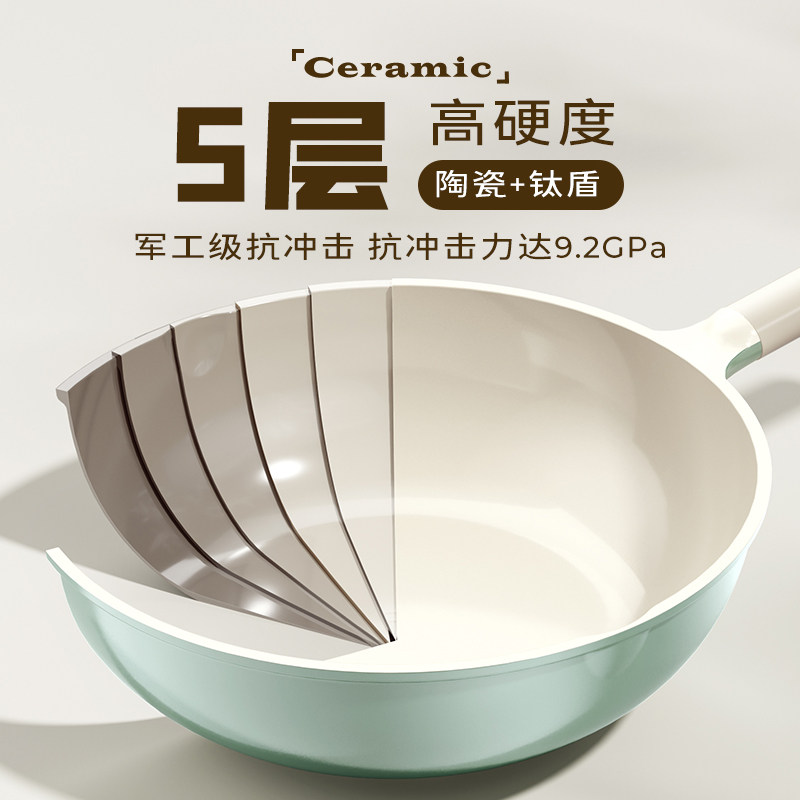 爱仕达无氟涂层不粘锅炒锅家用陶瓷不沾锅燃气电磁炉用钛锅炒菜锅
