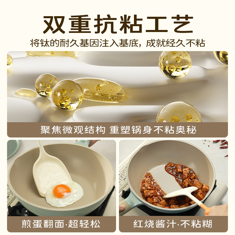 炊大皇不粘锅炒锅家用有钛聚油平底不沾锅电磁炉燃气灶专用炒菜锅
