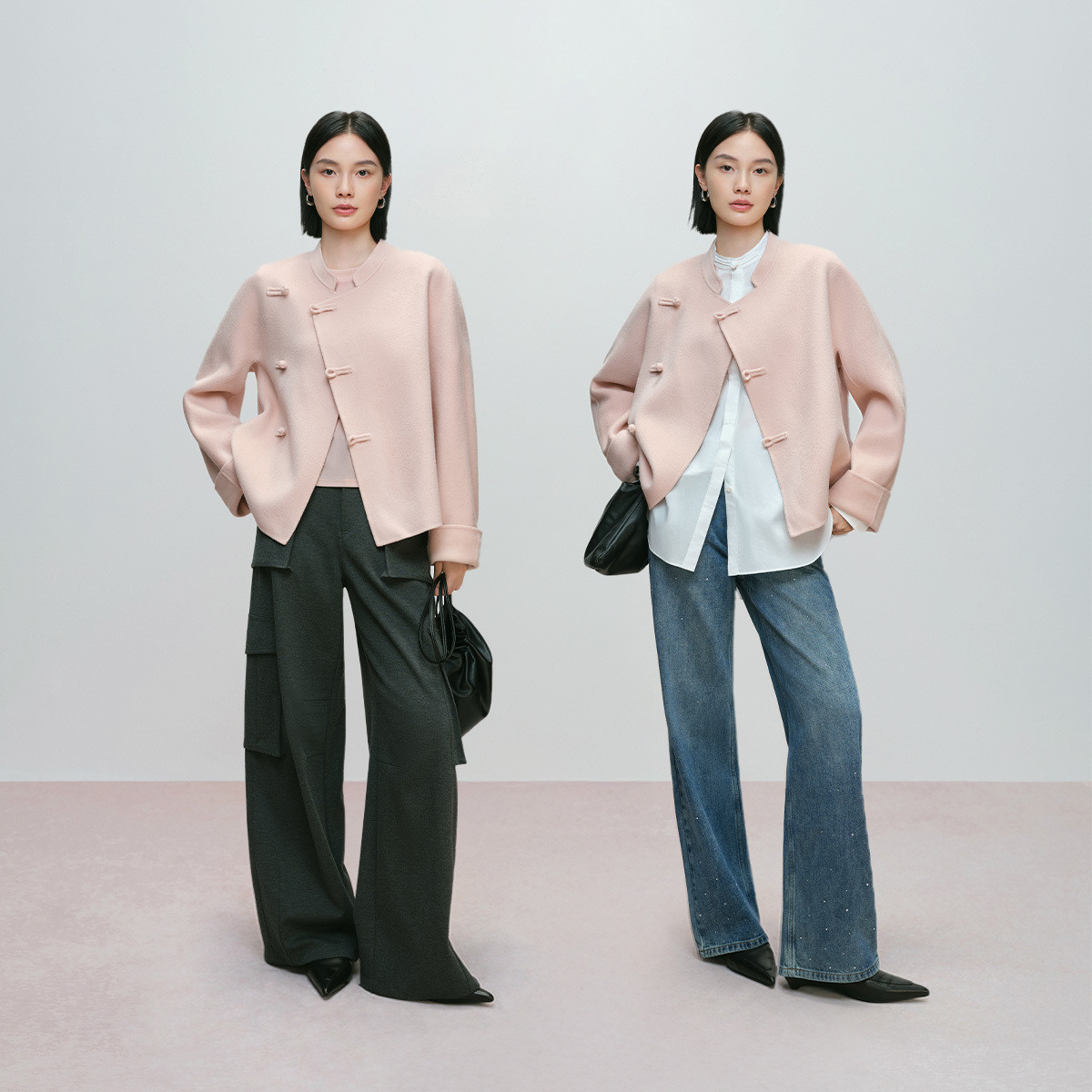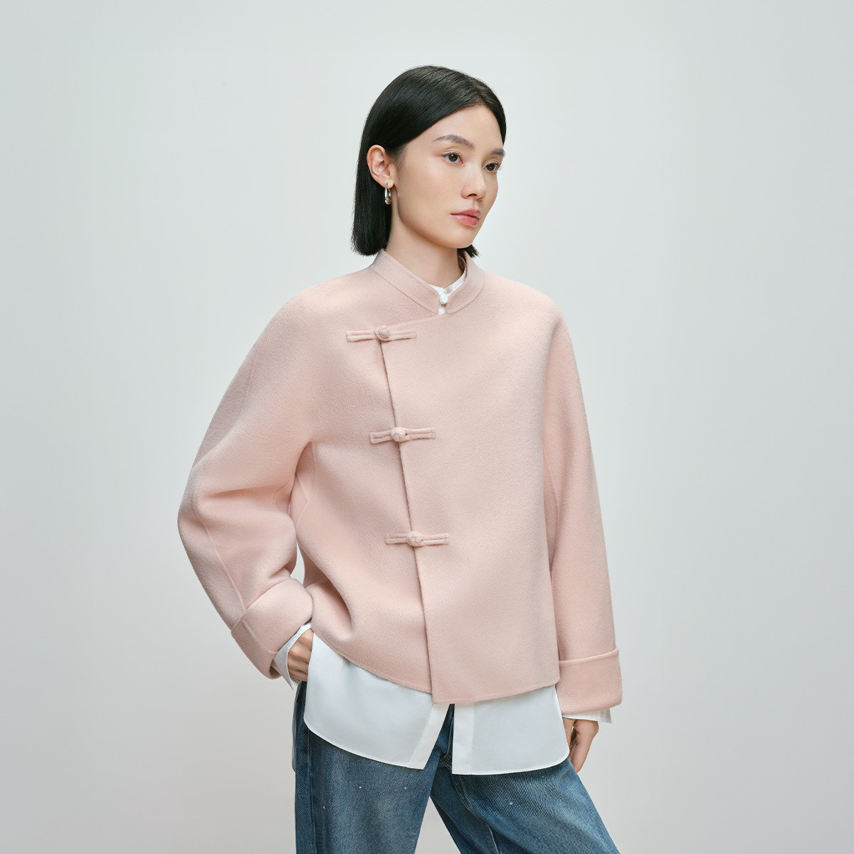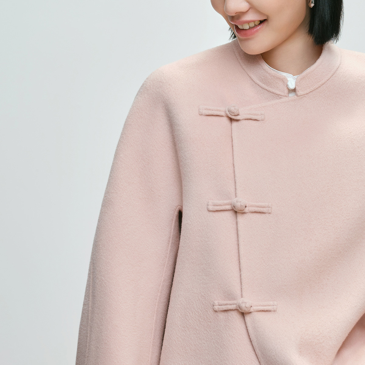 【东方呢】naivee纳薇25冬新款中式立领100%绵羊毛双面呢大衣短