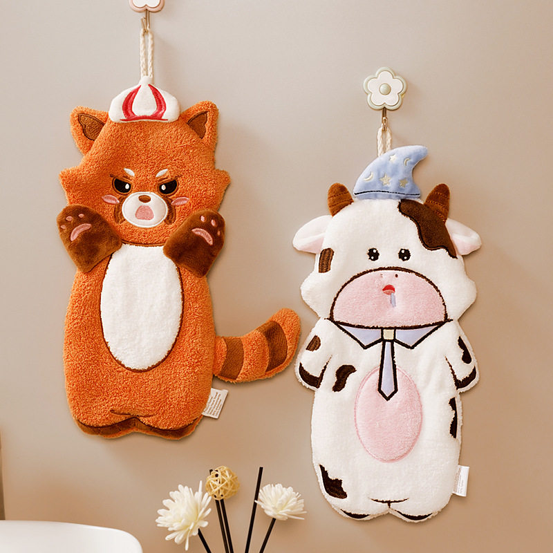 新品可爱卡通挂式擦手巾吸水速干抹手巾珊瑚绒儿童小毛巾伴手礼