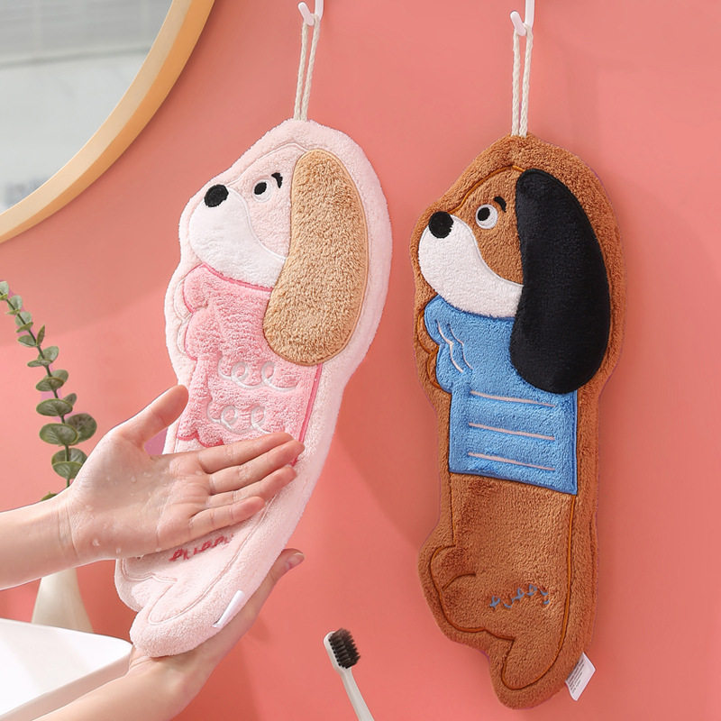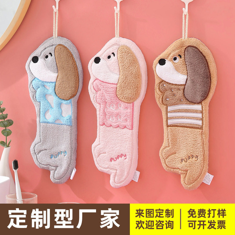 卡通挂式擦手巾珊瑚绒加厚吸水速干抹手巾儿童手帕毛巾伴手礼亲肤