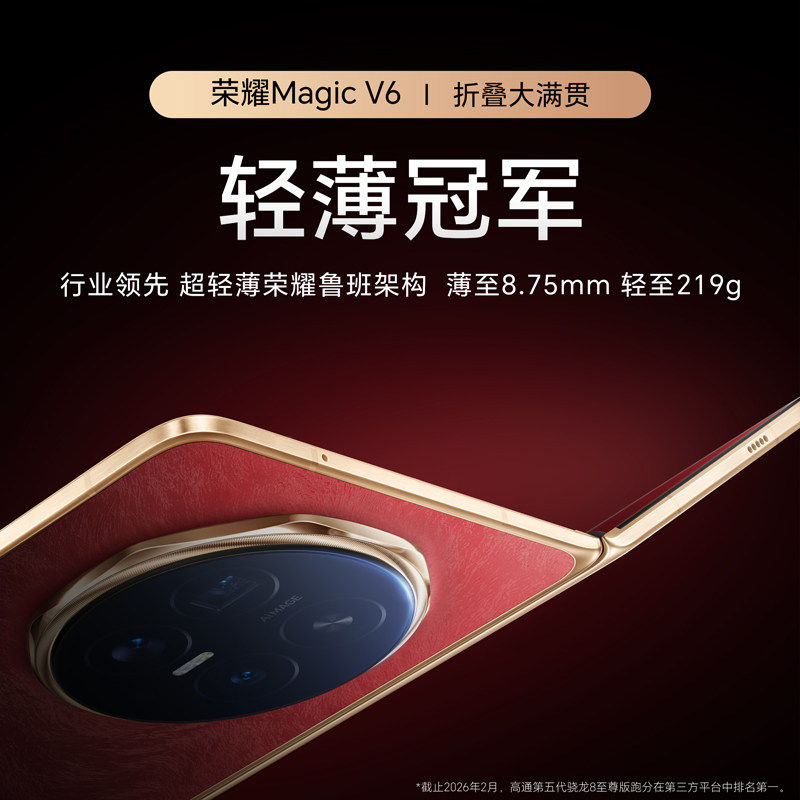 【6期免息+送荣耀手环9】HONOR/荣耀Magic V6 折叠屏手机至臻黑钻屏第五代骁龙8至尊轻薄续航正品官方旗舰店