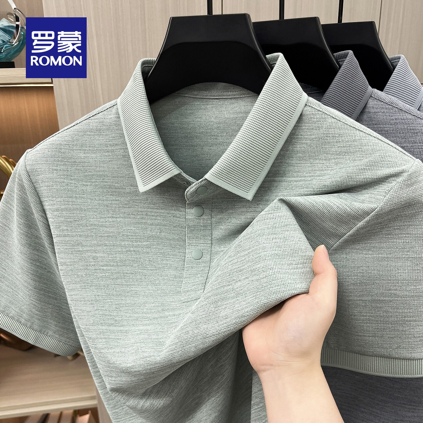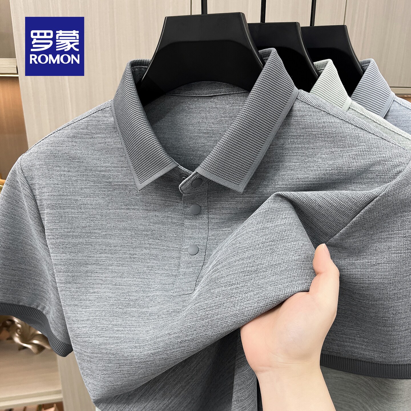 罗蒙轻商务男士短袖POLO衫2026夏季新款纯色百搭休闲翻领T恤衫男