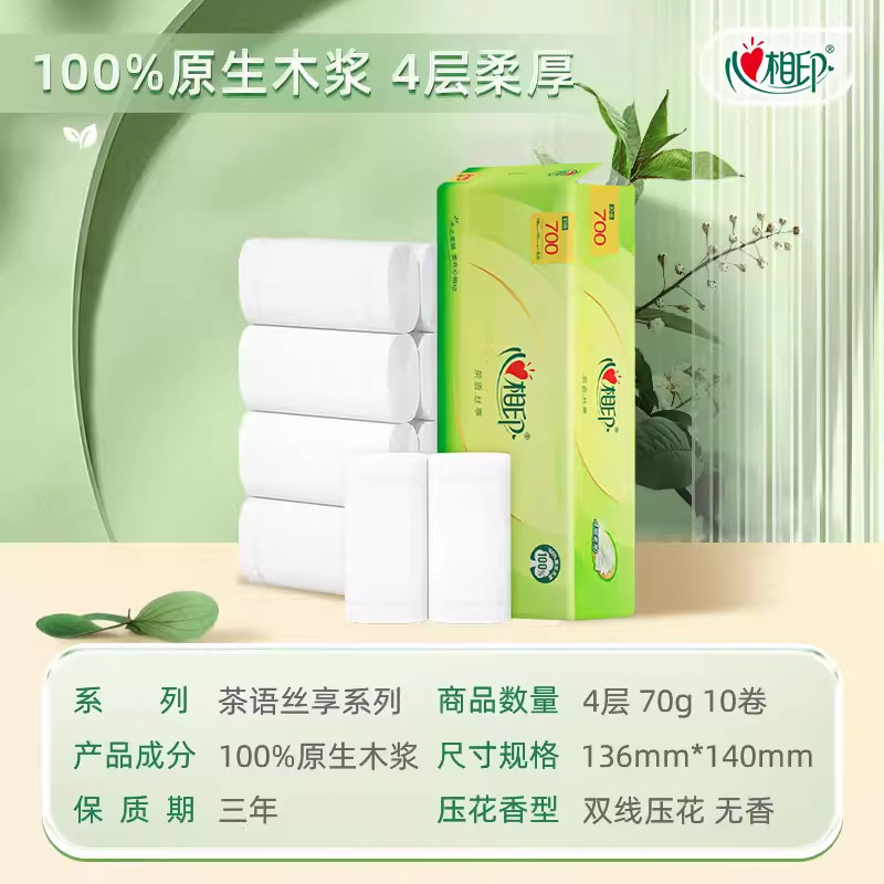 心相印茶语无芯卷纸大号卫生纸200克10卷家庭囤货装纸巾厕纸短款