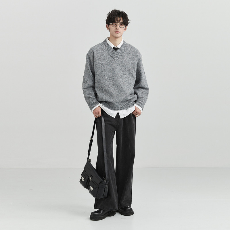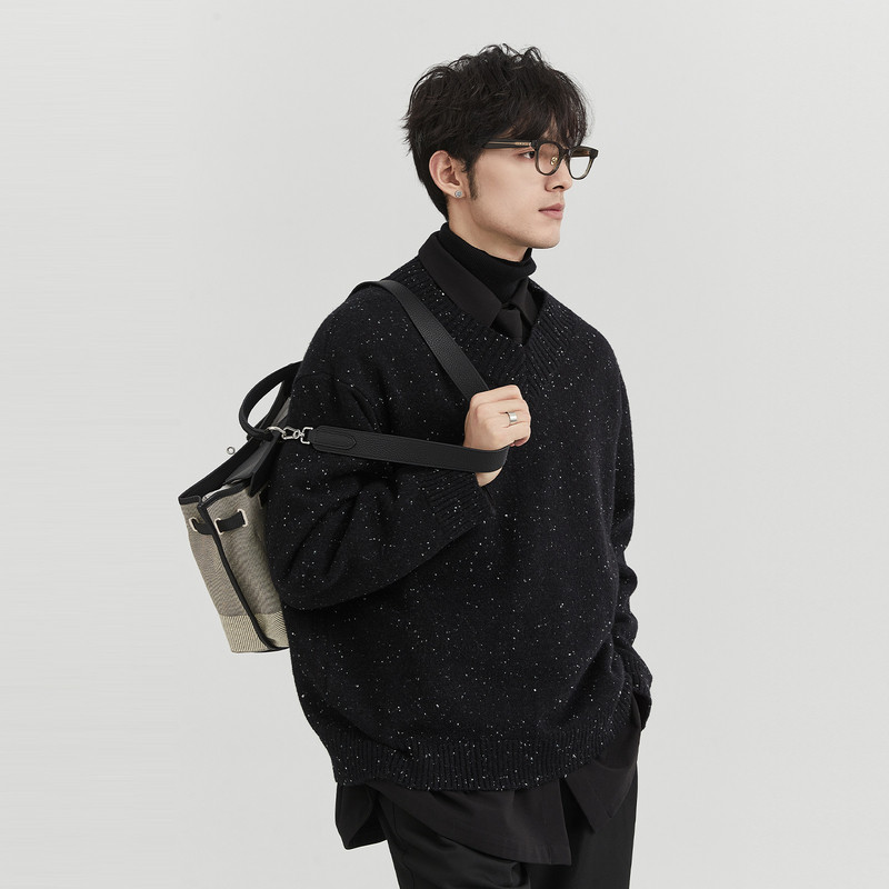 伯爵卓尔outlet奥莱店 秋季亮片设计感大V领针织衫男韩版休闲上衣