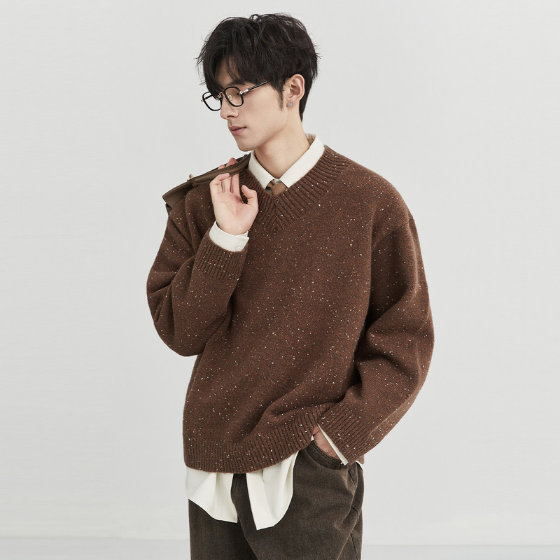ASSDY|绵羊毛900G重磅翻领假两件毛衣男2025冬轻熟风休闲针织线衣