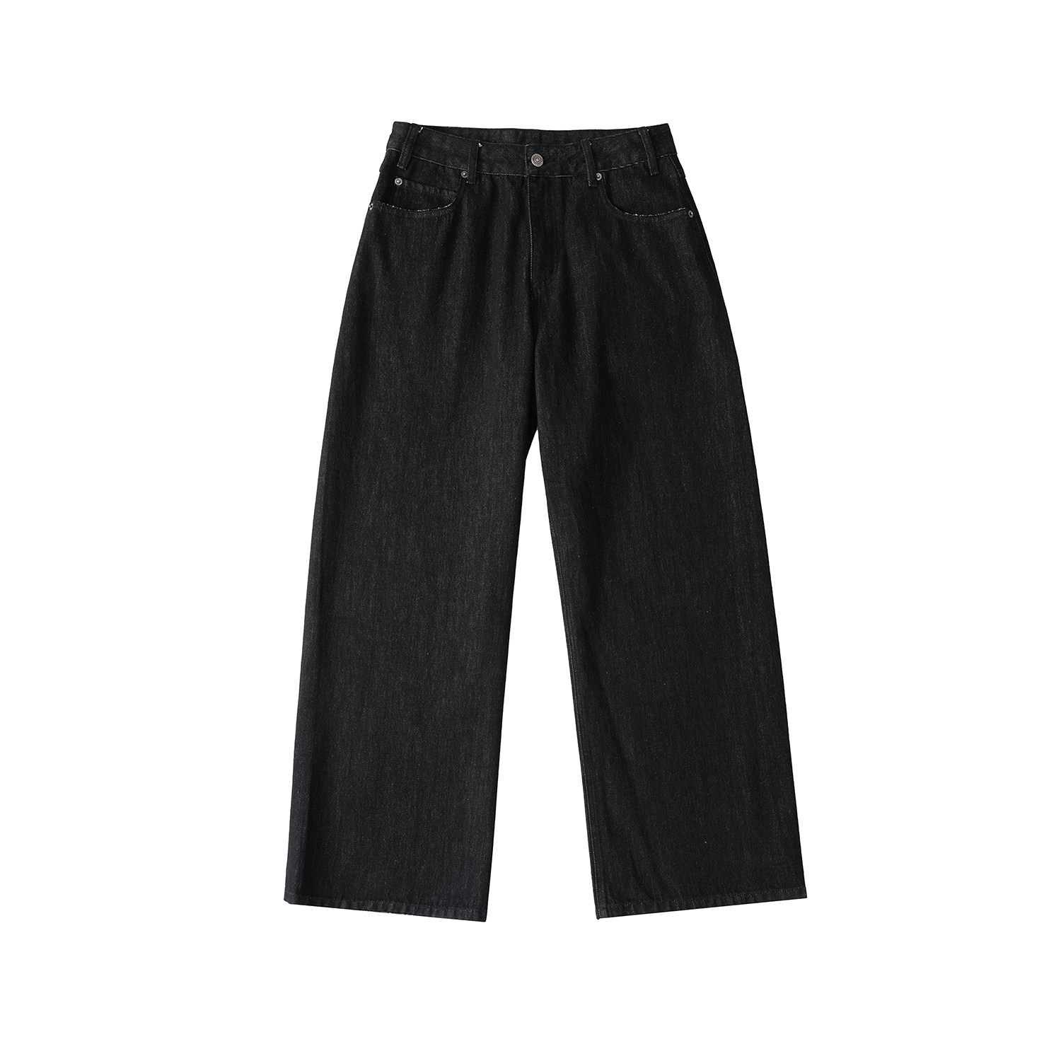NEVERNEED原色加绒直筒牛仔裤男女冬季美式潮牌cleanfit宽松A字裤