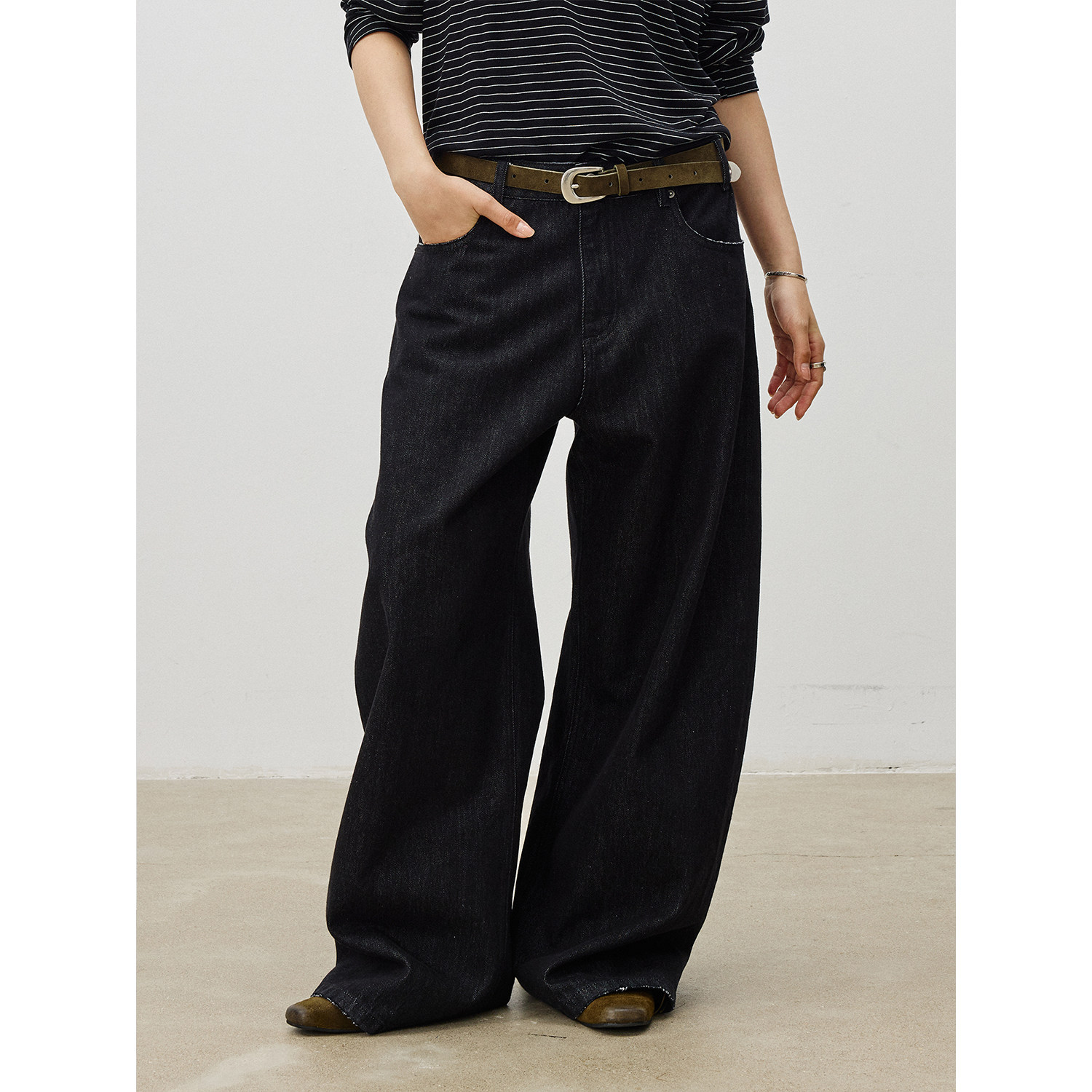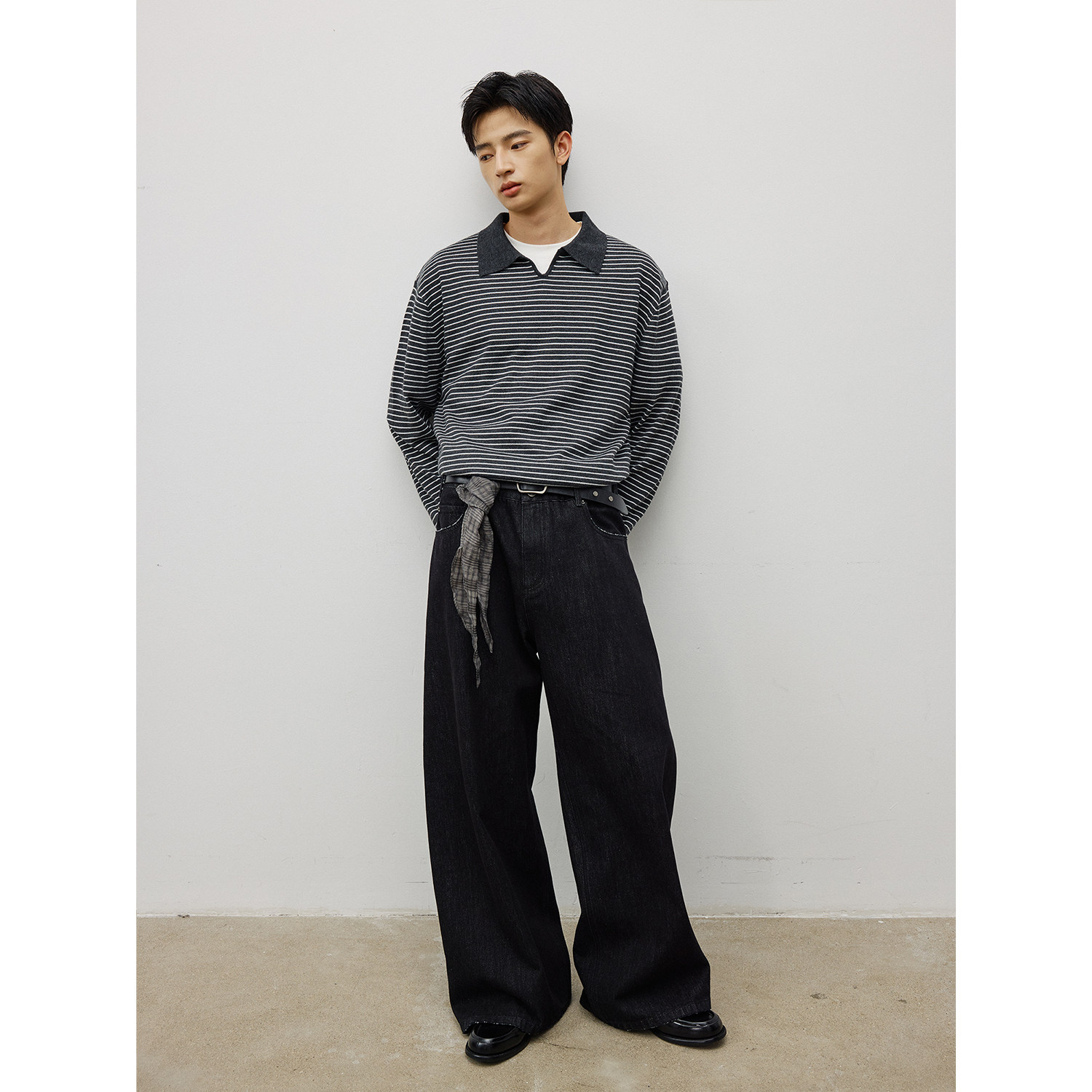 王安宇同款森马牛仔裤男做旧复古阔感弯刀裤宽松弧形裤2025冬新款