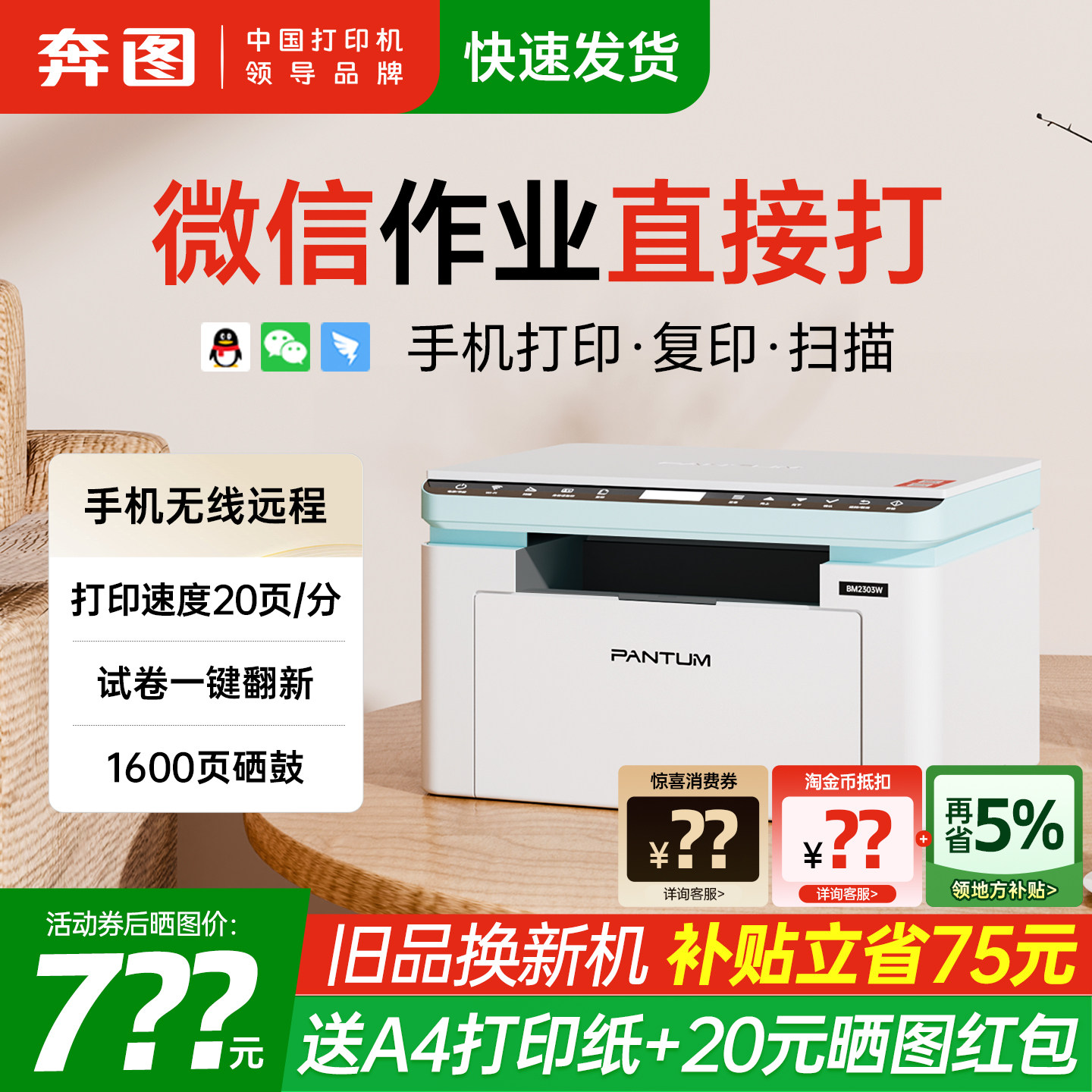 PANTUM奔图旗舰店BM2333W黑白激光打印机复印扫描一体机办公专用手机无线远程家用小型微信作业a4多功能M1
