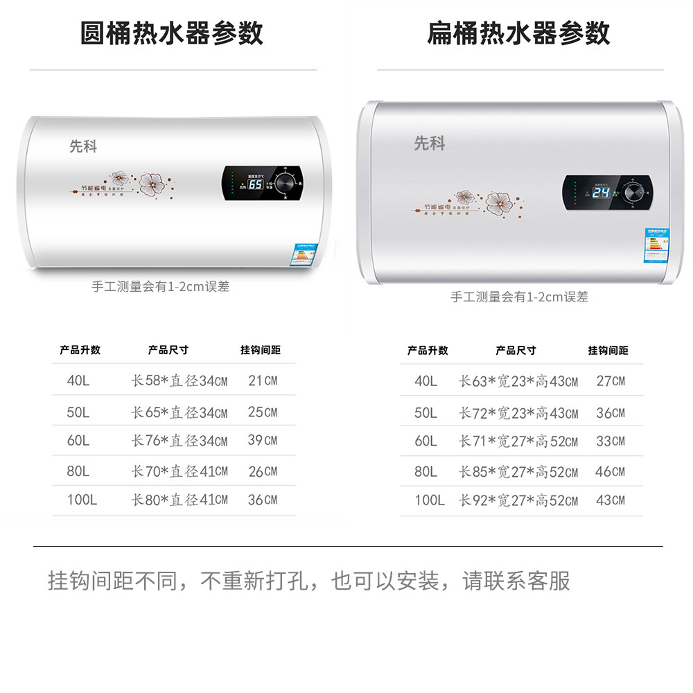 先科电热水器电家用卫生间小型储水式速热洗澡40L/50/60升出租房