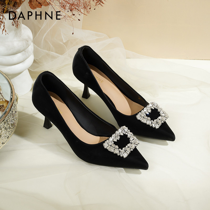 达芙妮黑色高跟鞋子女款2026新款春季水钻鞋子女法式通勤浅口单鞋