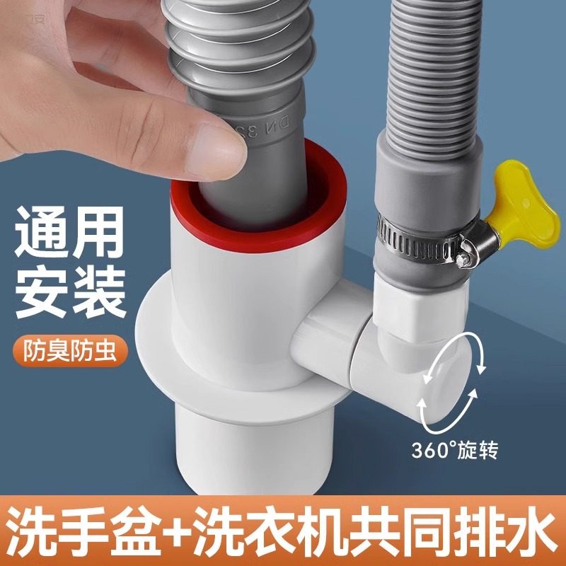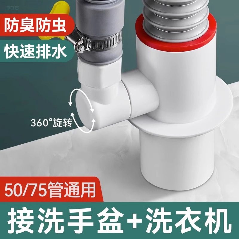 洗衣机下水管三头通地漏双排水专用接头排水管道二合一防臭防溢水