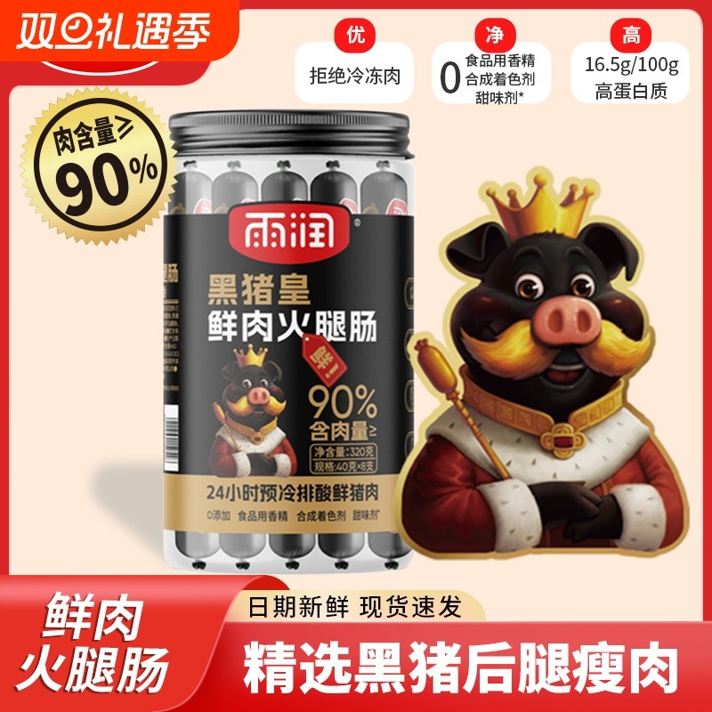雨润黑猪皇火腿肠320g零食方便面泡面搭档香肠煎烤肠优级好吃早餐