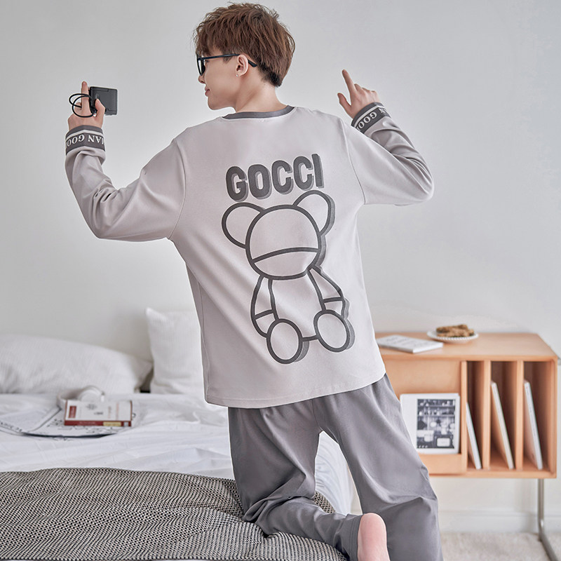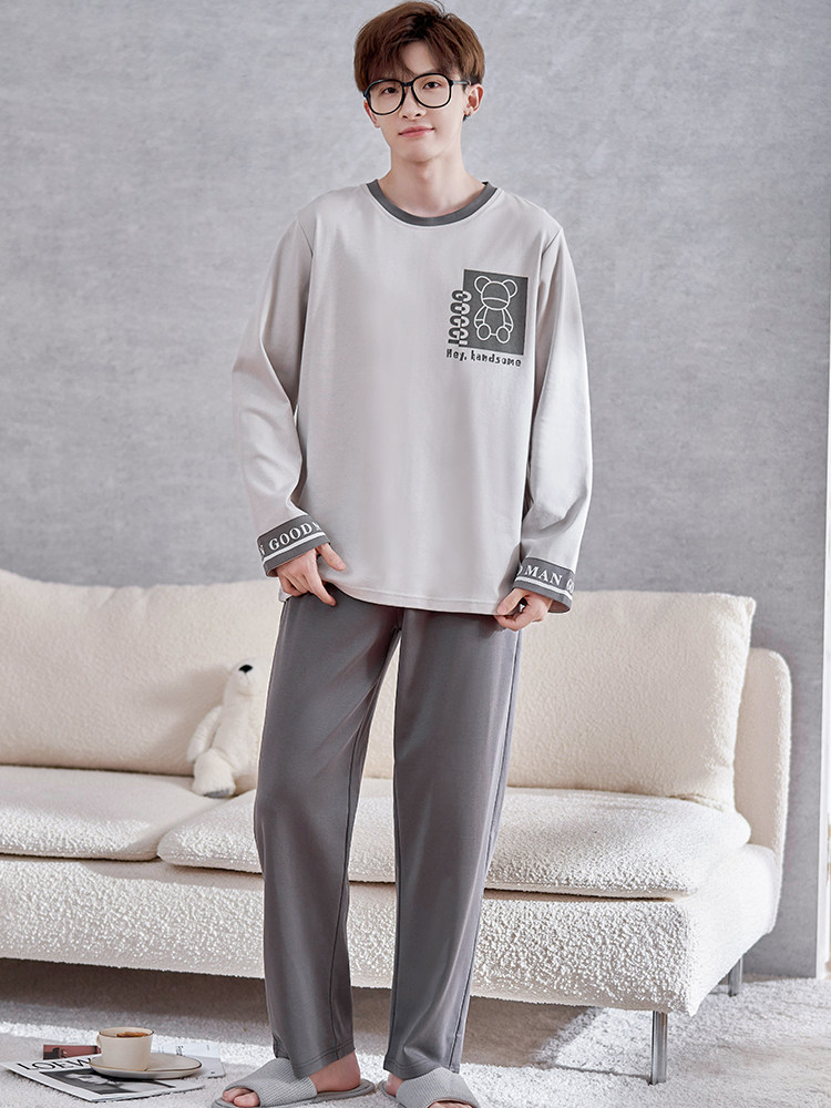 男士睡衣春秋款纯棉长袖青少年中学生卡通男孩大码男童家居服套装