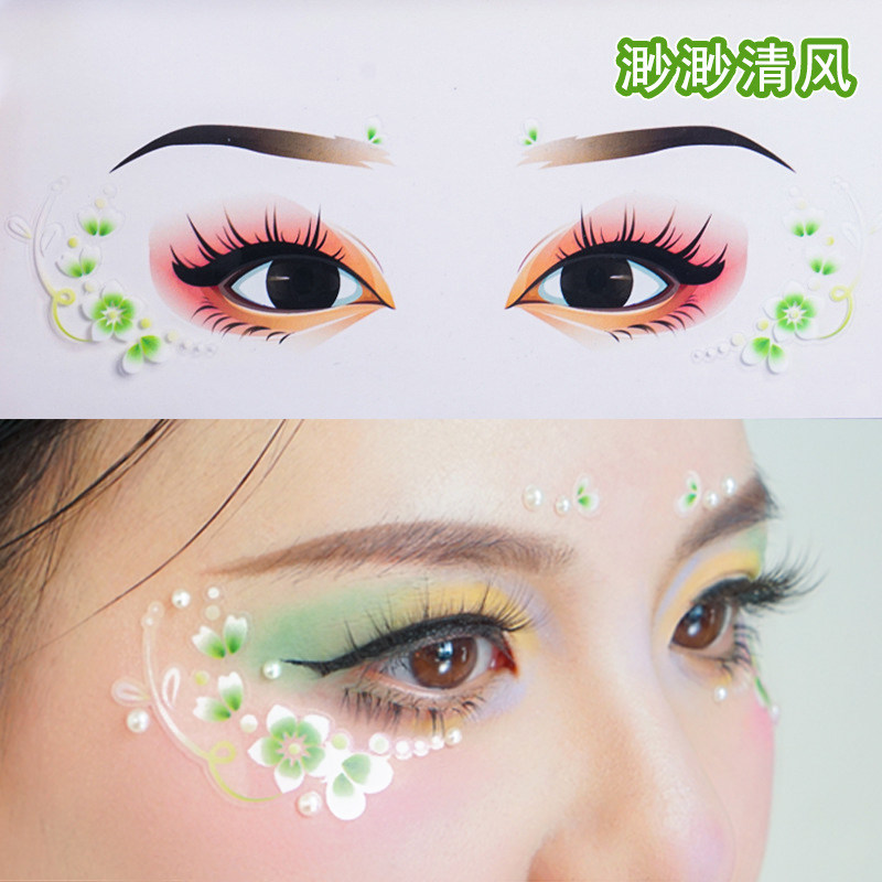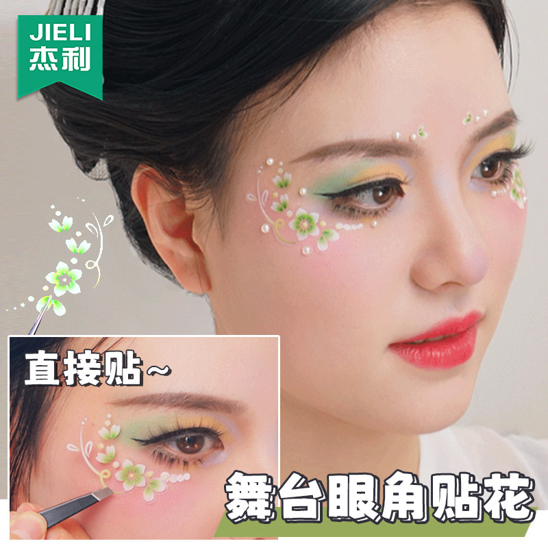 杰利花钿脸上贴纸脸部贴饰品绿色儿童舞台妆化妆彩绘汉服古风妆容额头眼角贴花面部装饰眼妆儿童贴花眉心贴纸