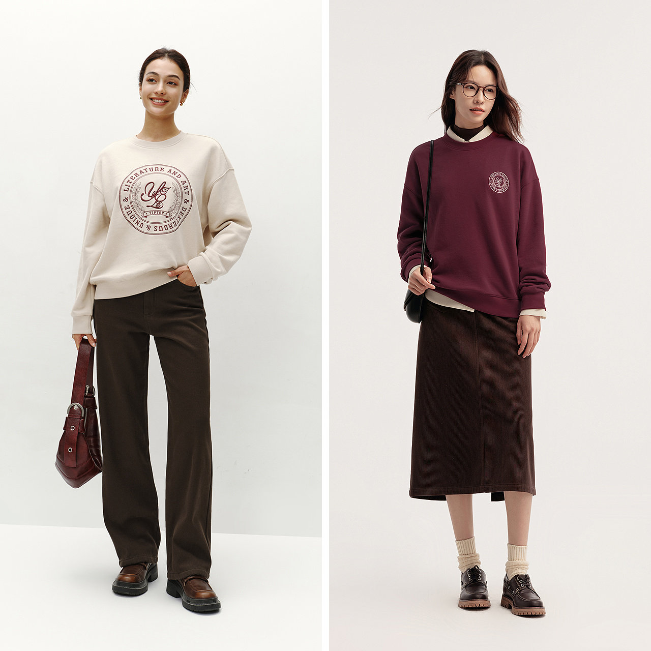 森马卫衣女设计感图案oversize发热抑菌冬绣花抓绒上衣慵懒学院风