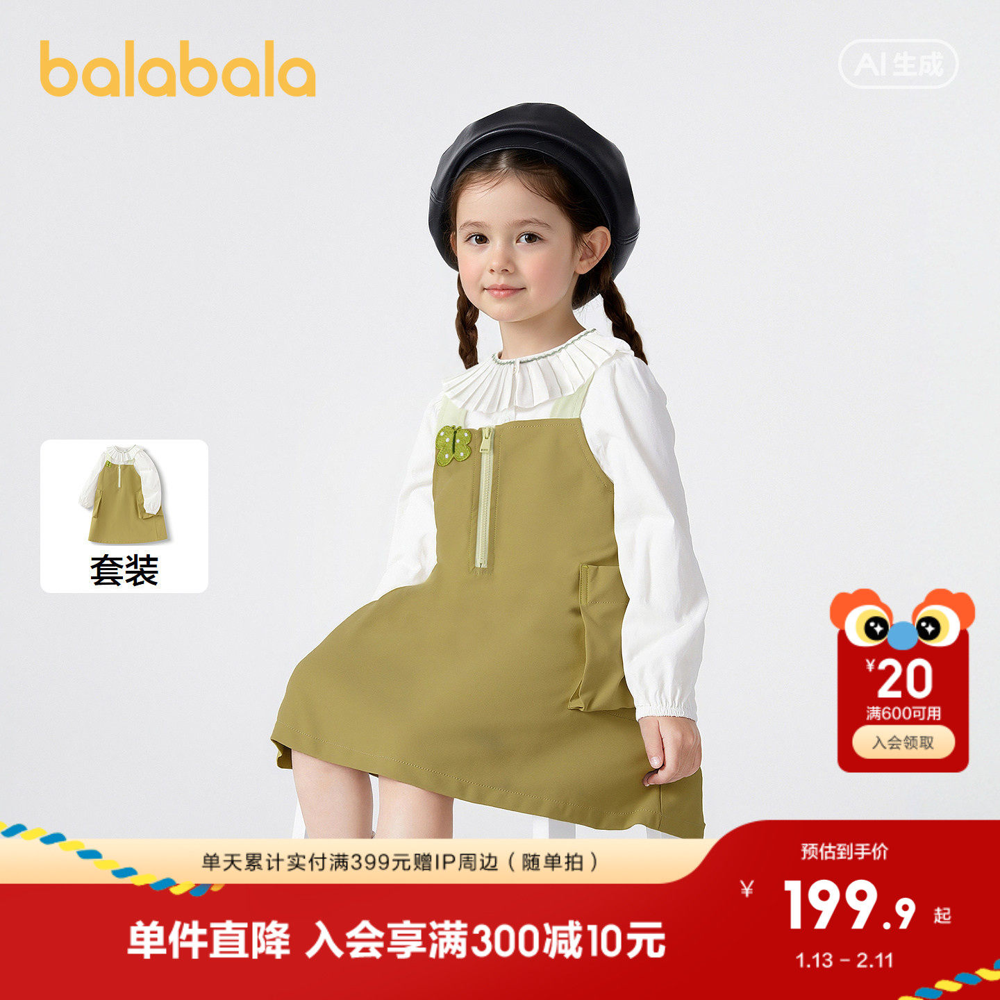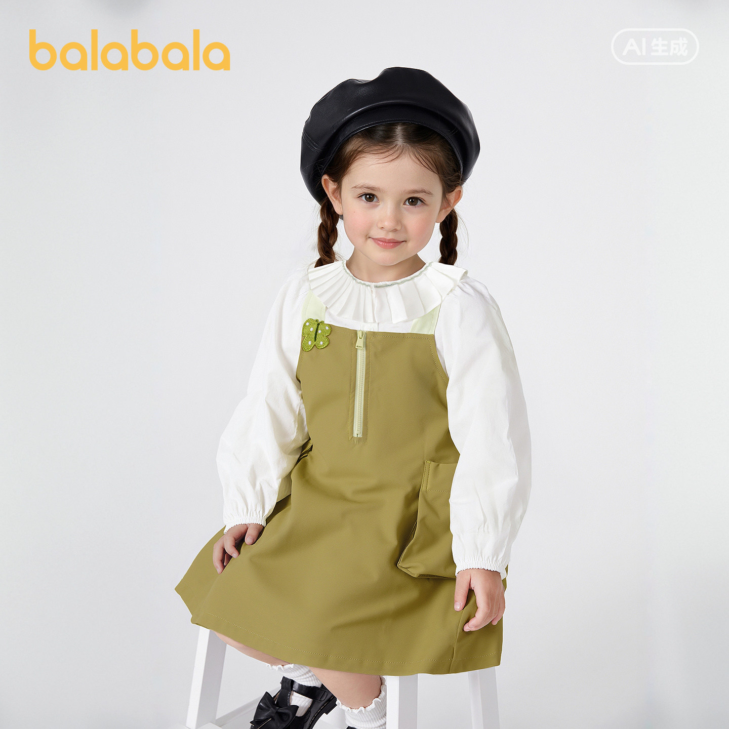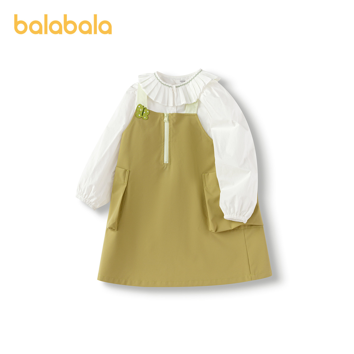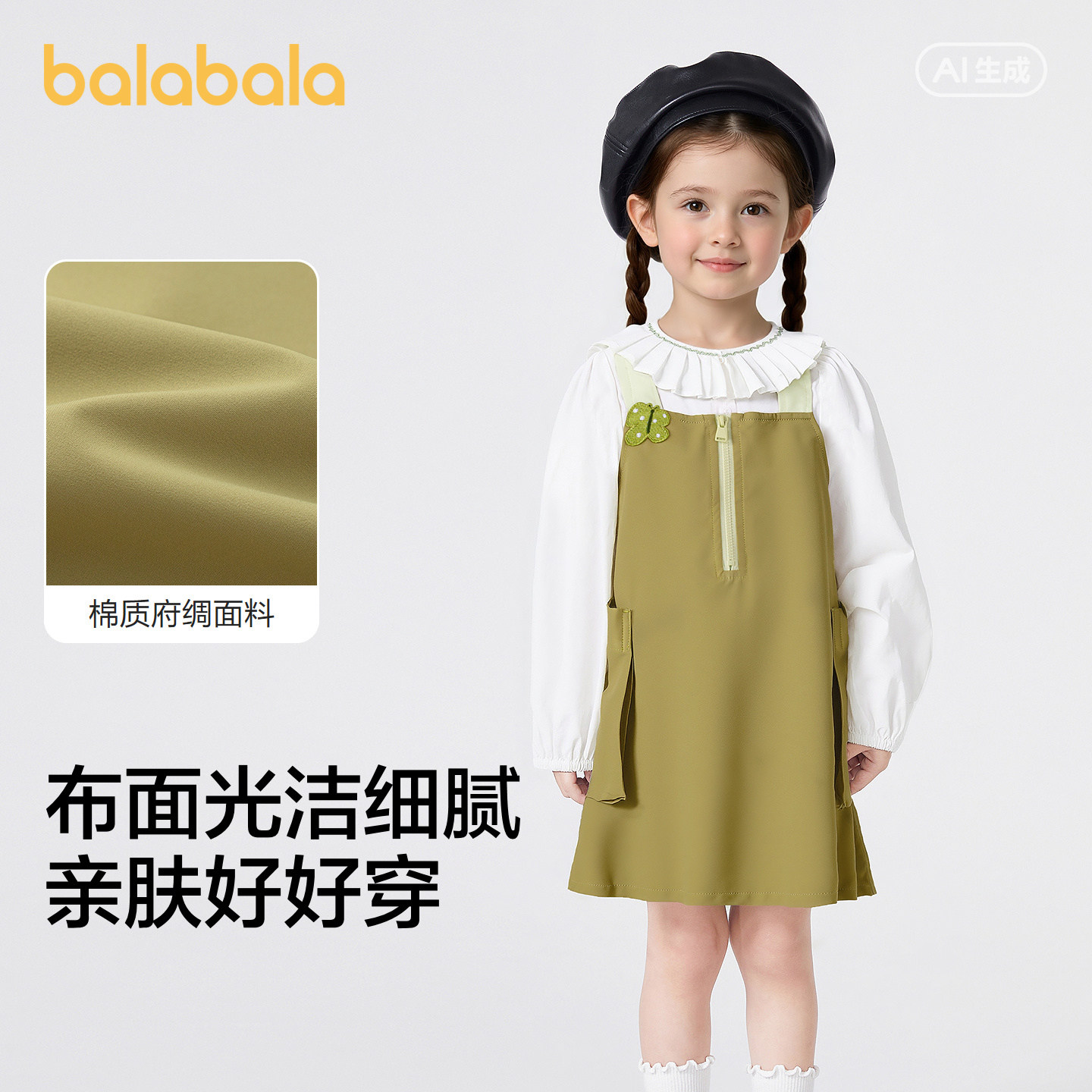巴拉巴拉童装儿童连衣裙女童春秋装背带裙两件套口袋绣花甜美洋气