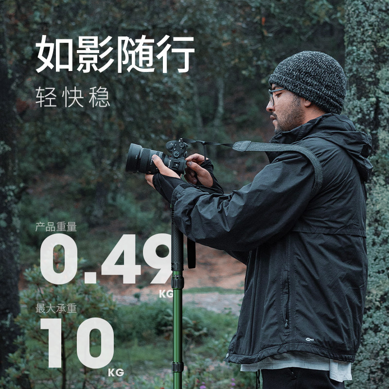 Manbily曼比利A-555L便携相机独脚架单反短小轻便户外登山摄影单脚架碳纤维演唱会支架婚纱跟拍独角架C-555L