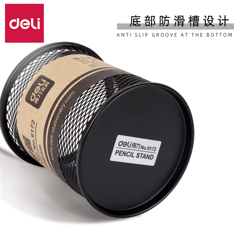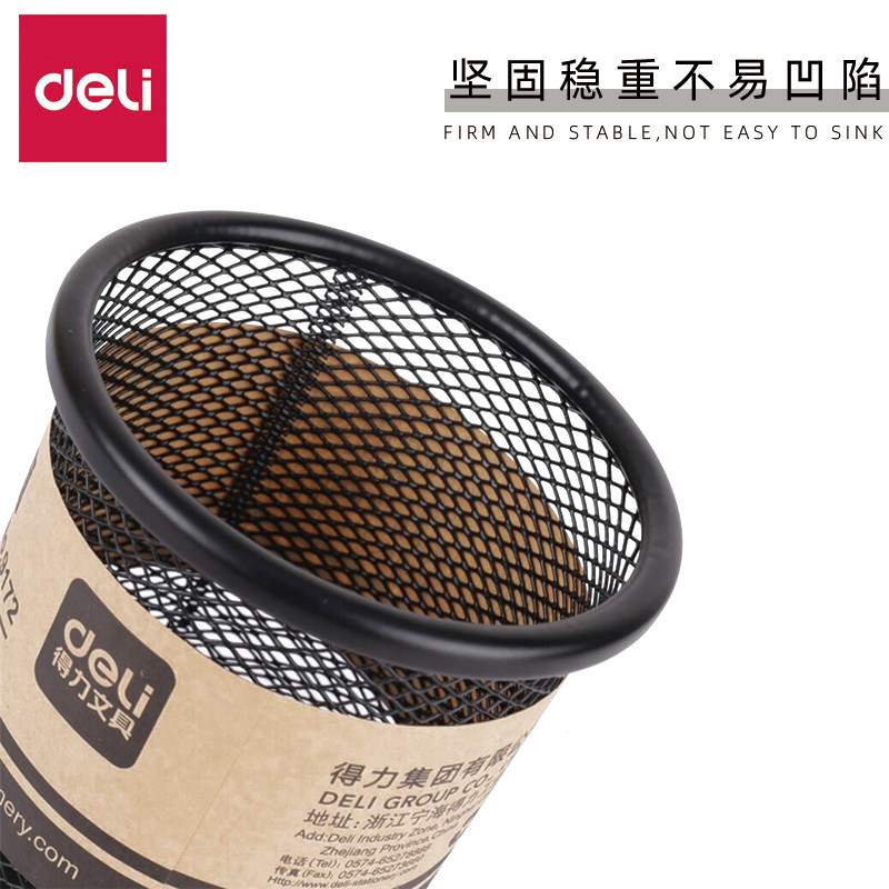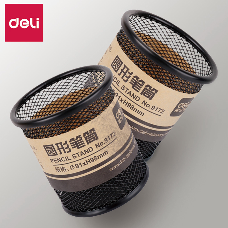 得力圆形笔筒韩国创意时尚小清新可爱笔桶金属丝网铁笔筒办公笔座糖果色简约个性大容量学生收纳整理用男女款