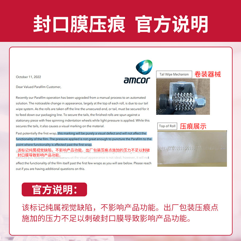 parafilm封口膜美国pm996实验室三角瓶培养皿香水白酒封口密封膜