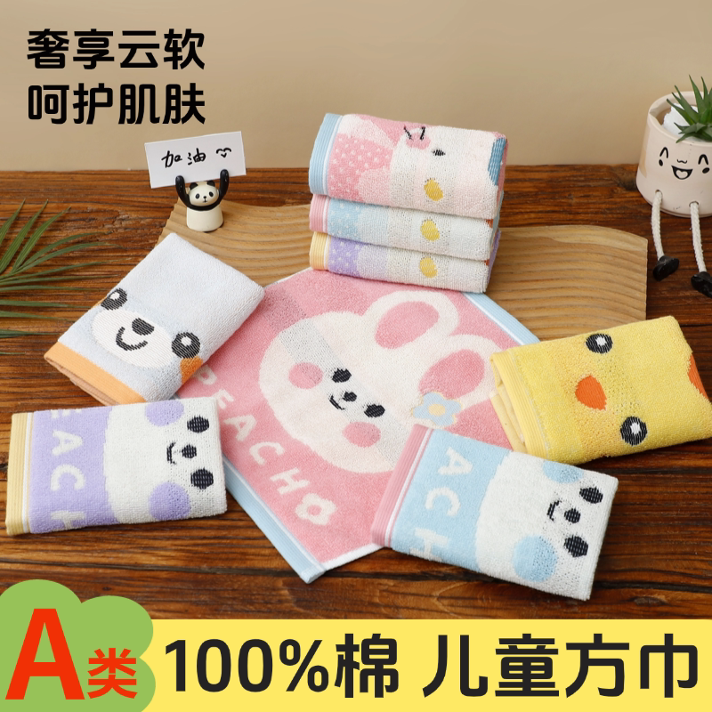 A类儿童洗脸小方巾宝宝毛巾纯棉柔软吸水卡通可爱幼儿园专用擦脸