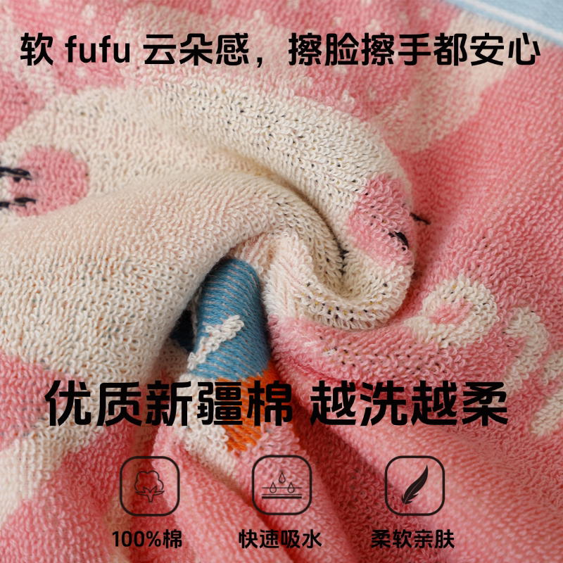 儿童毛巾洗脸家用幼儿园男女童宝宝柔软吸水方形非纯棉面巾不掉毛