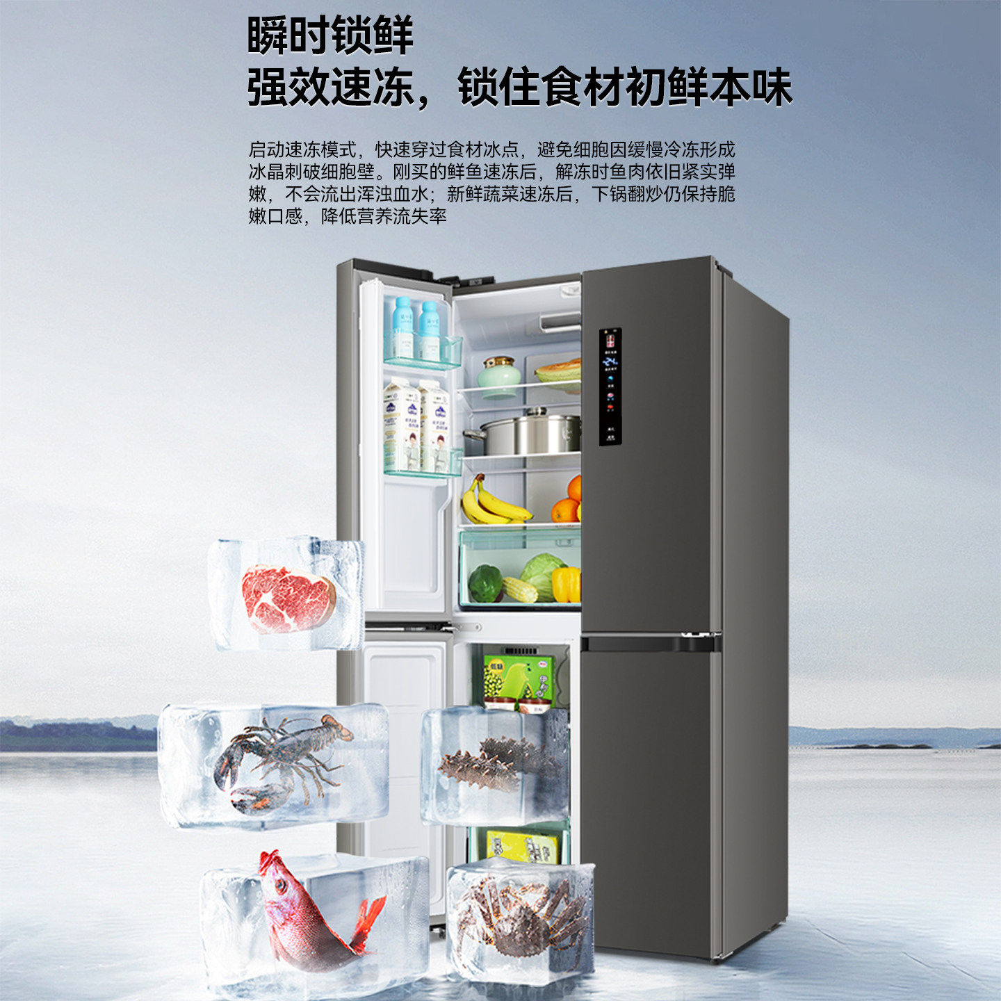 政府补贴海尔出品统帅悦己懒人510十字对开四门超薄一级家用冰箱
