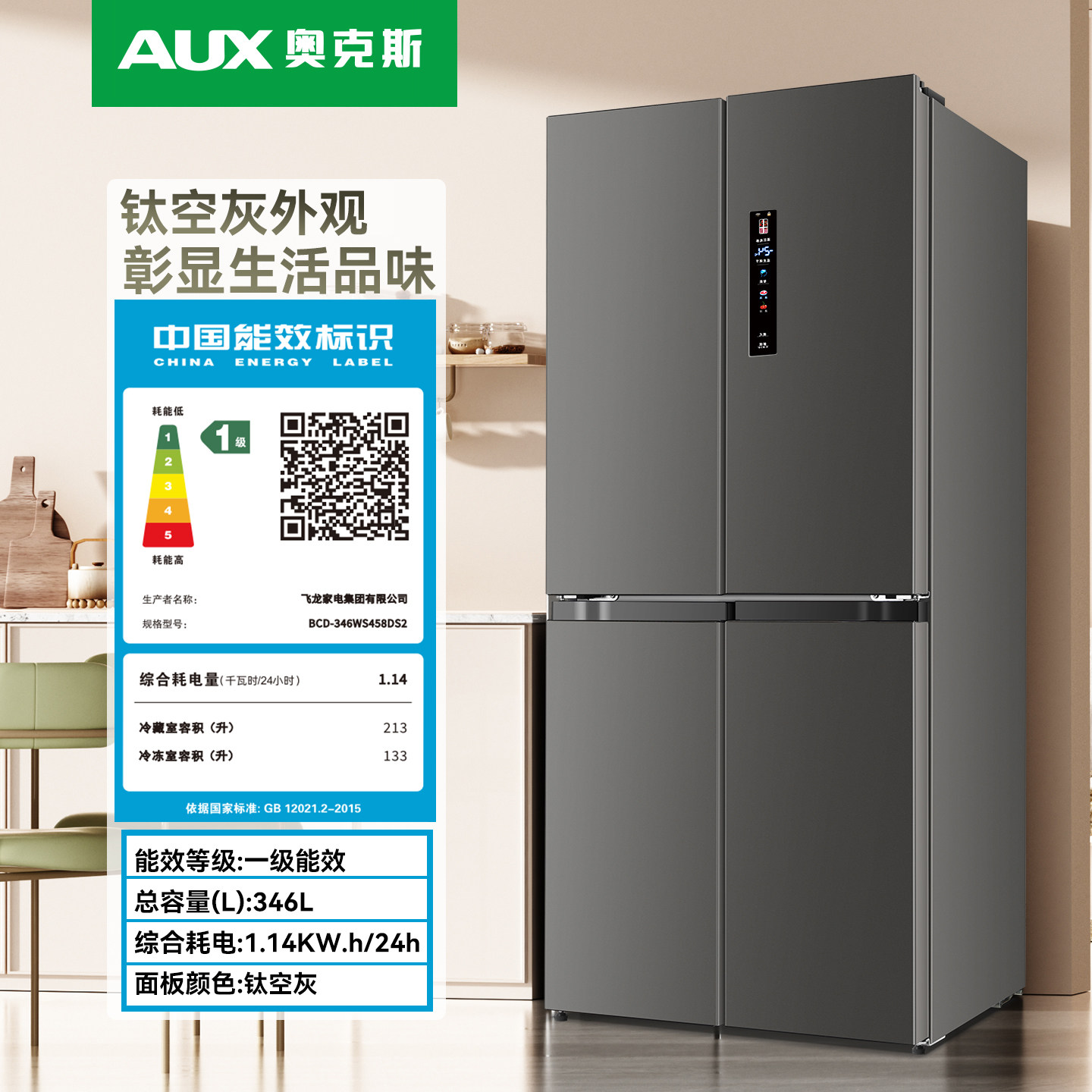 奥克斯十字对开门家用冰箱大容量双开门风冷无霜一级超薄嵌入租房