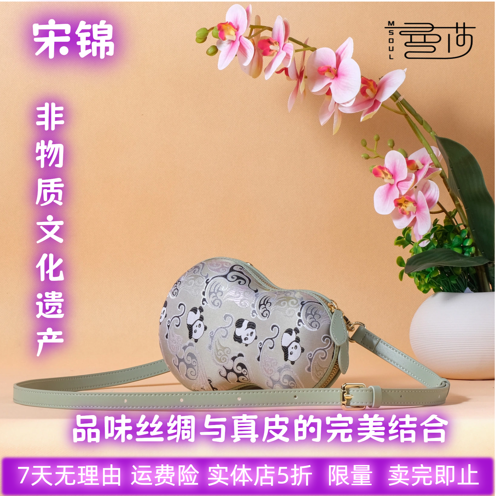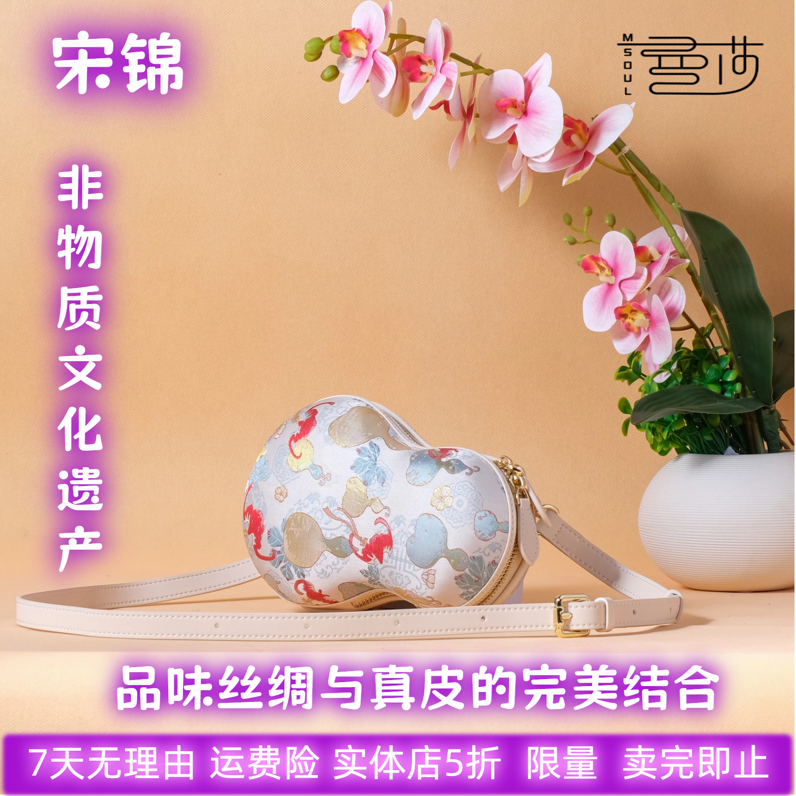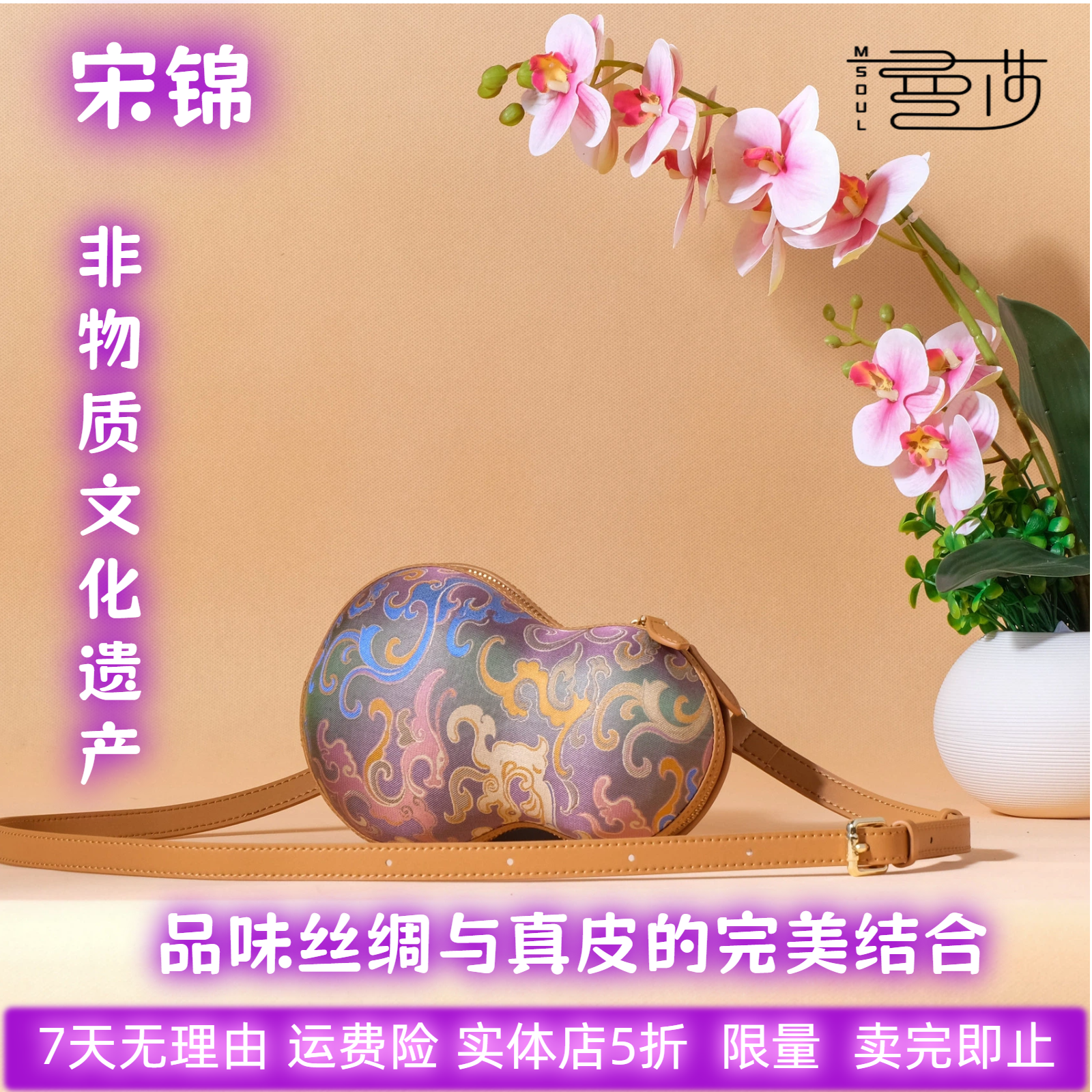 曼莎国风宋锦香云纱手提斜挎刺绣真丝牛皮新款新中式女包旗袍包包