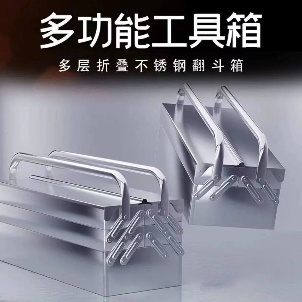 不锈钢工具箱三层折叠家用手提式铁皮收纳盒多功能多层双层收纳箱