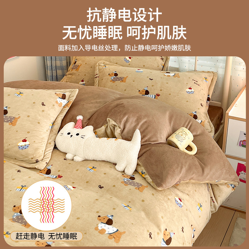 2025新款冬季牛奶绒四件套法兰珊瑚绒床品床单被套加绒床上三件套
