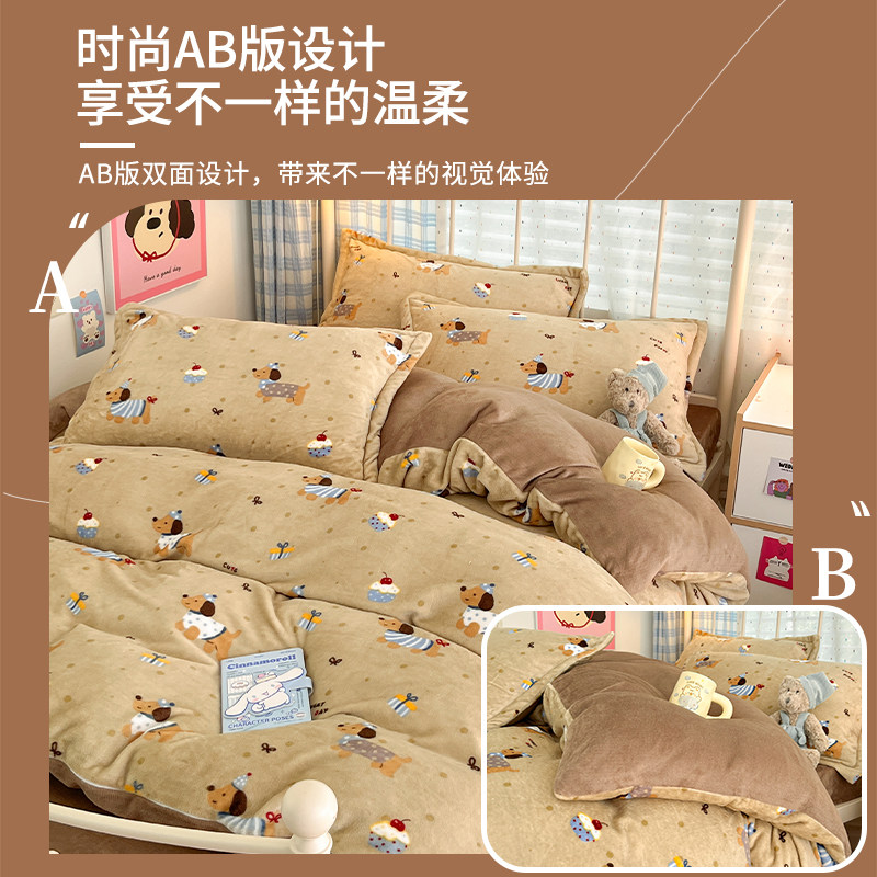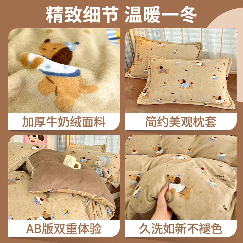 秋冬季加厚四件套牛奶绒被套床单双面加绒被罩床笠学生宿舍三件套